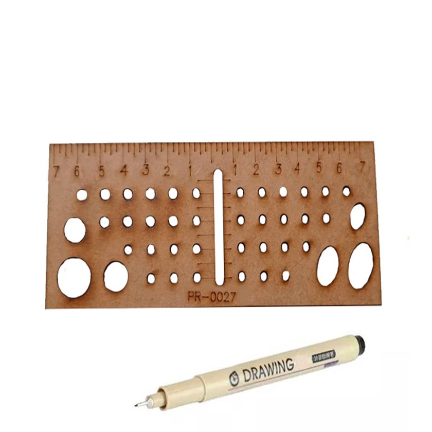 Regua molde simetria rosto de boneca de pano com caneta