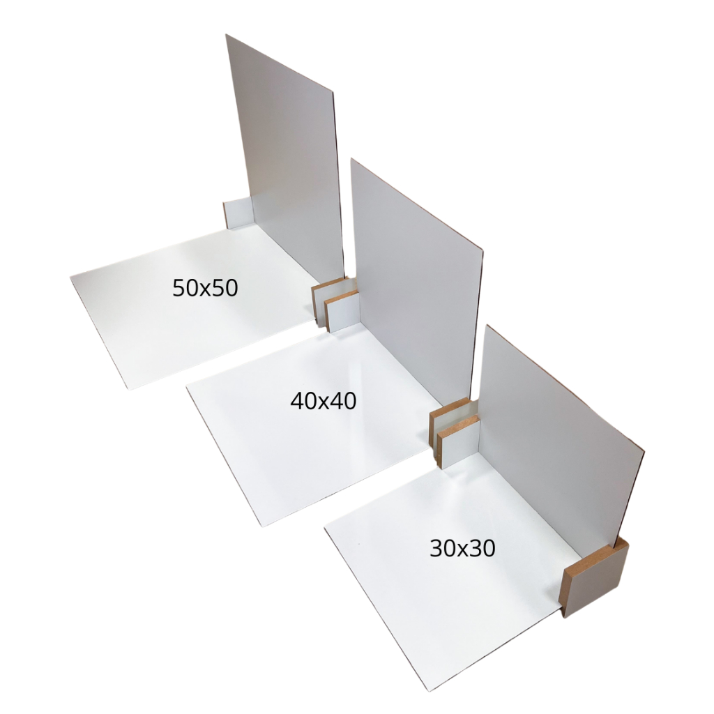 Kit Mini Estúdio Fotográfico Portátil Branco Placa de HDF 3mm 30x30 e 50x50