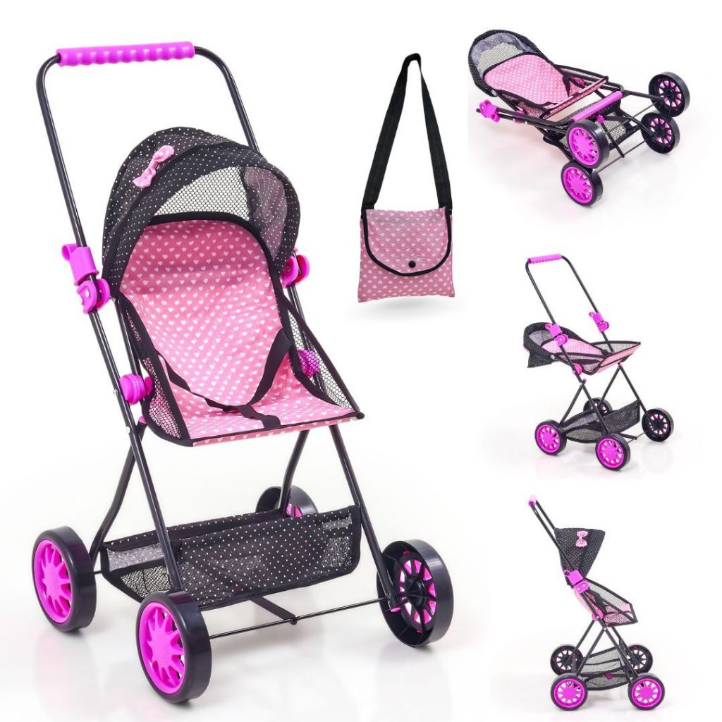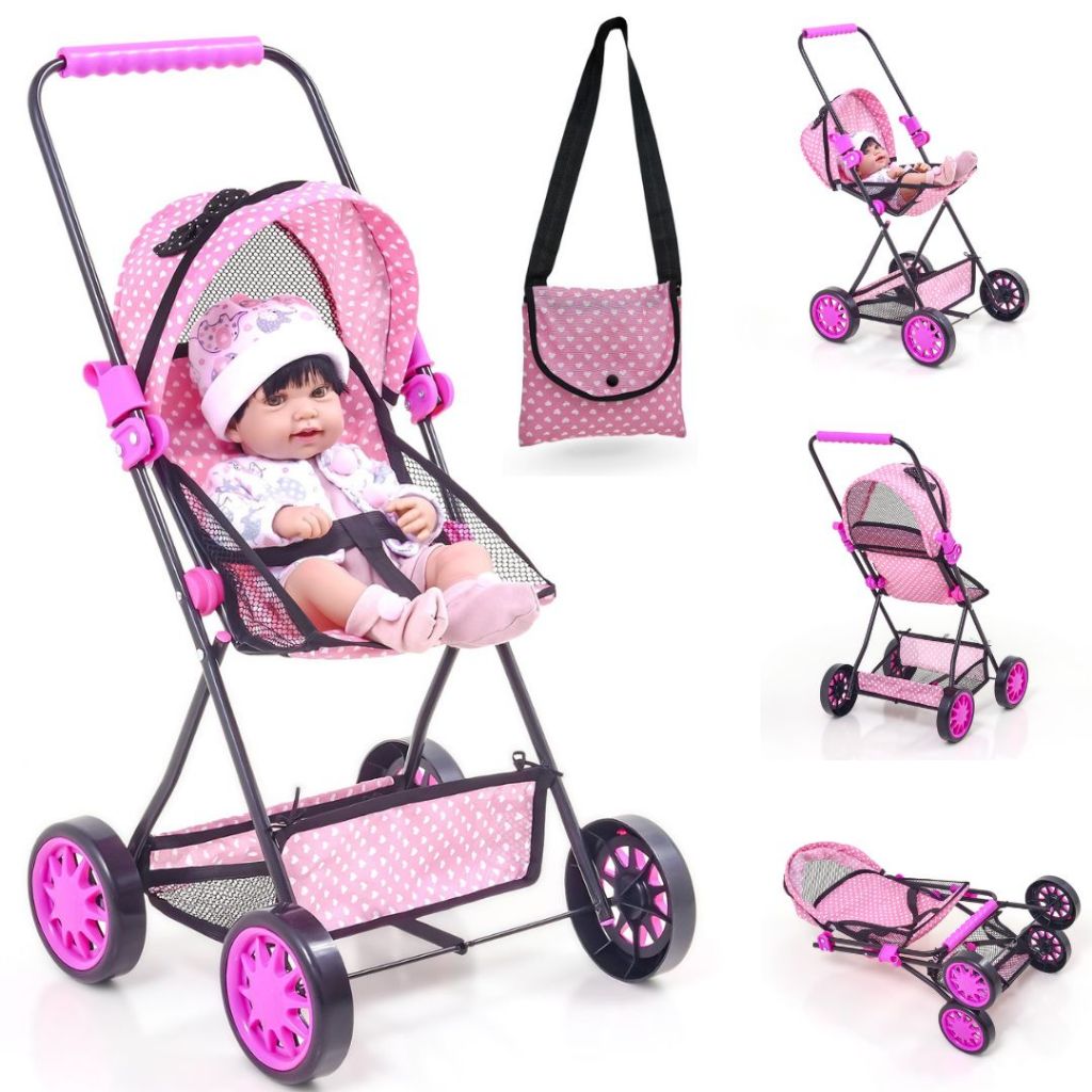 Carrinho de Boneca Baby Sag Infantil Rosa Coração Novidade Menina Reborn.