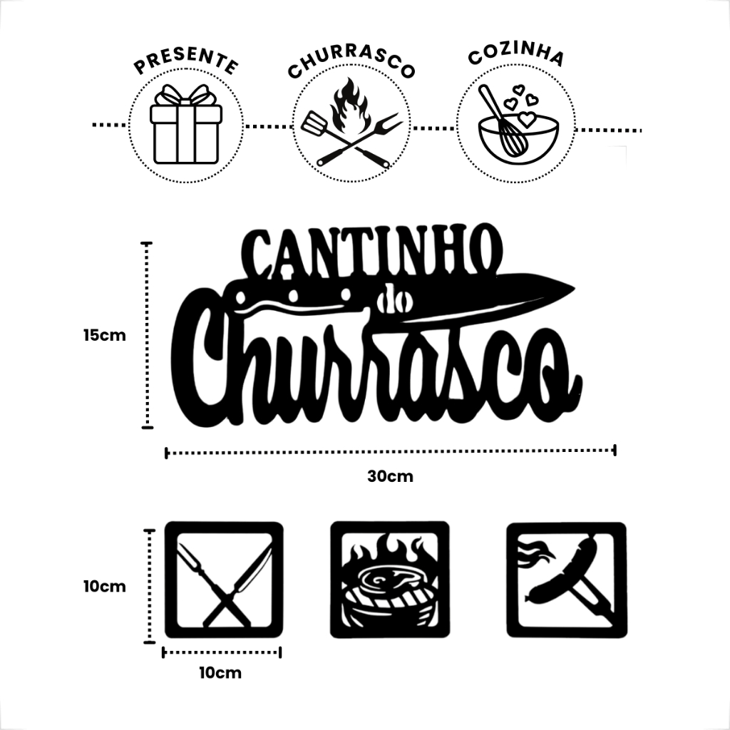 Kit Cantinho do Churrasco Quadro decorativo 4 peças