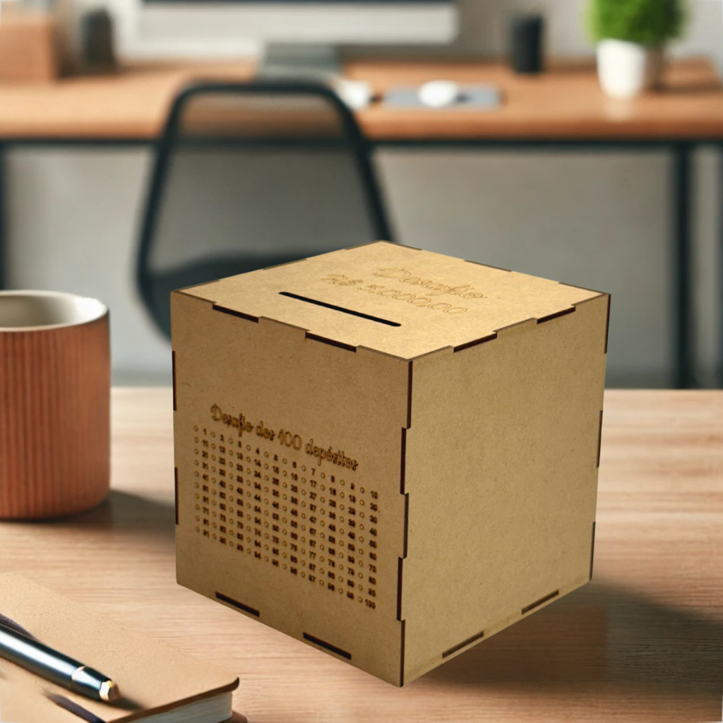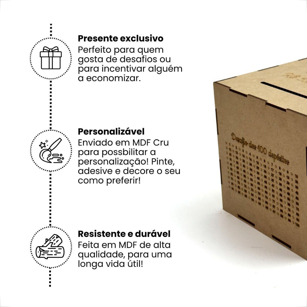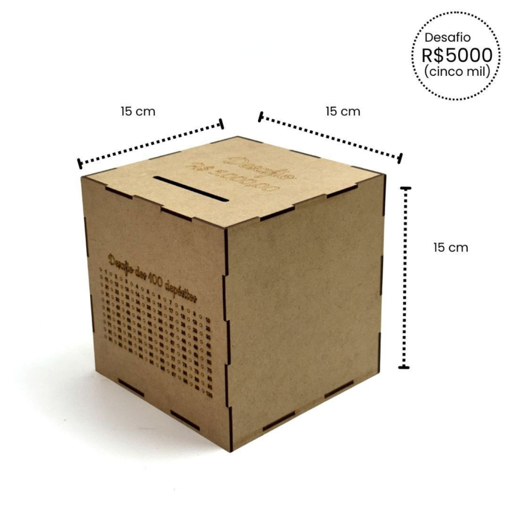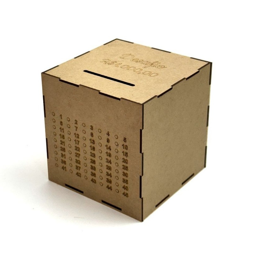 Cofre Mdf Desafio Notas e Moedas Caixa Madeira Poupe Dinheiro e Alcance Seus Objetivos