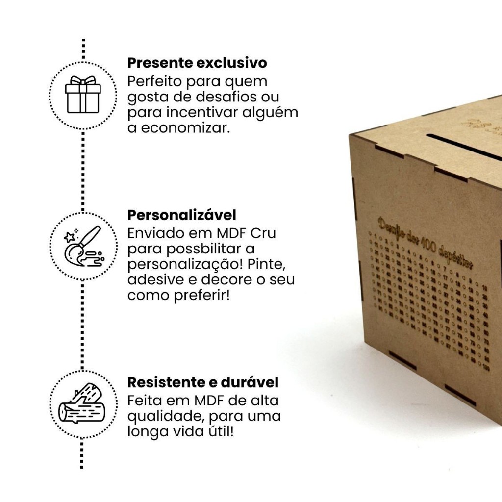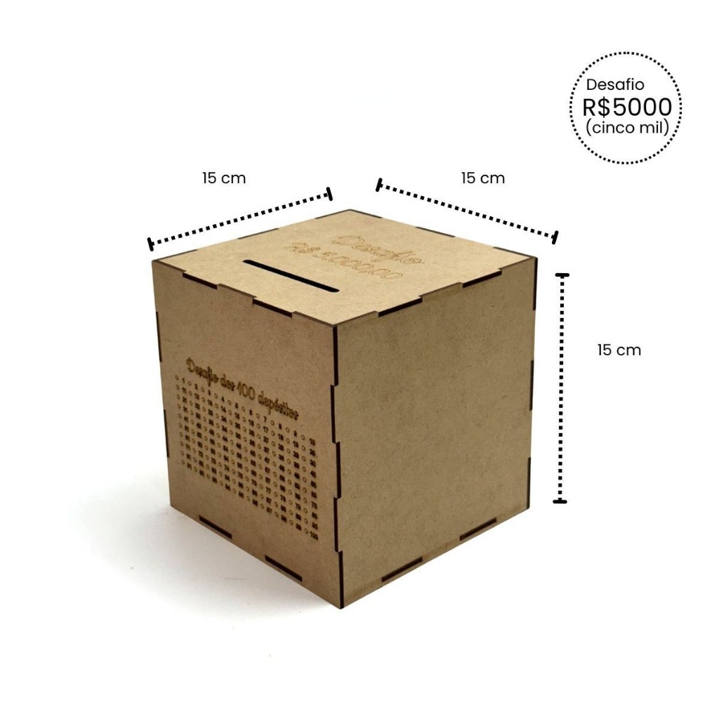 Cofre Mdf Desafio Poupança 1Mil 5Mil 10Mil 20Mil Caixa Economica de Madeira