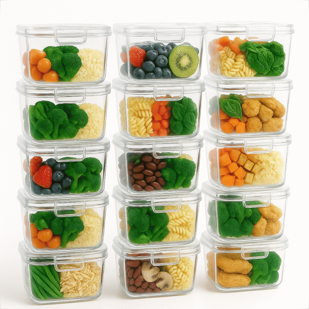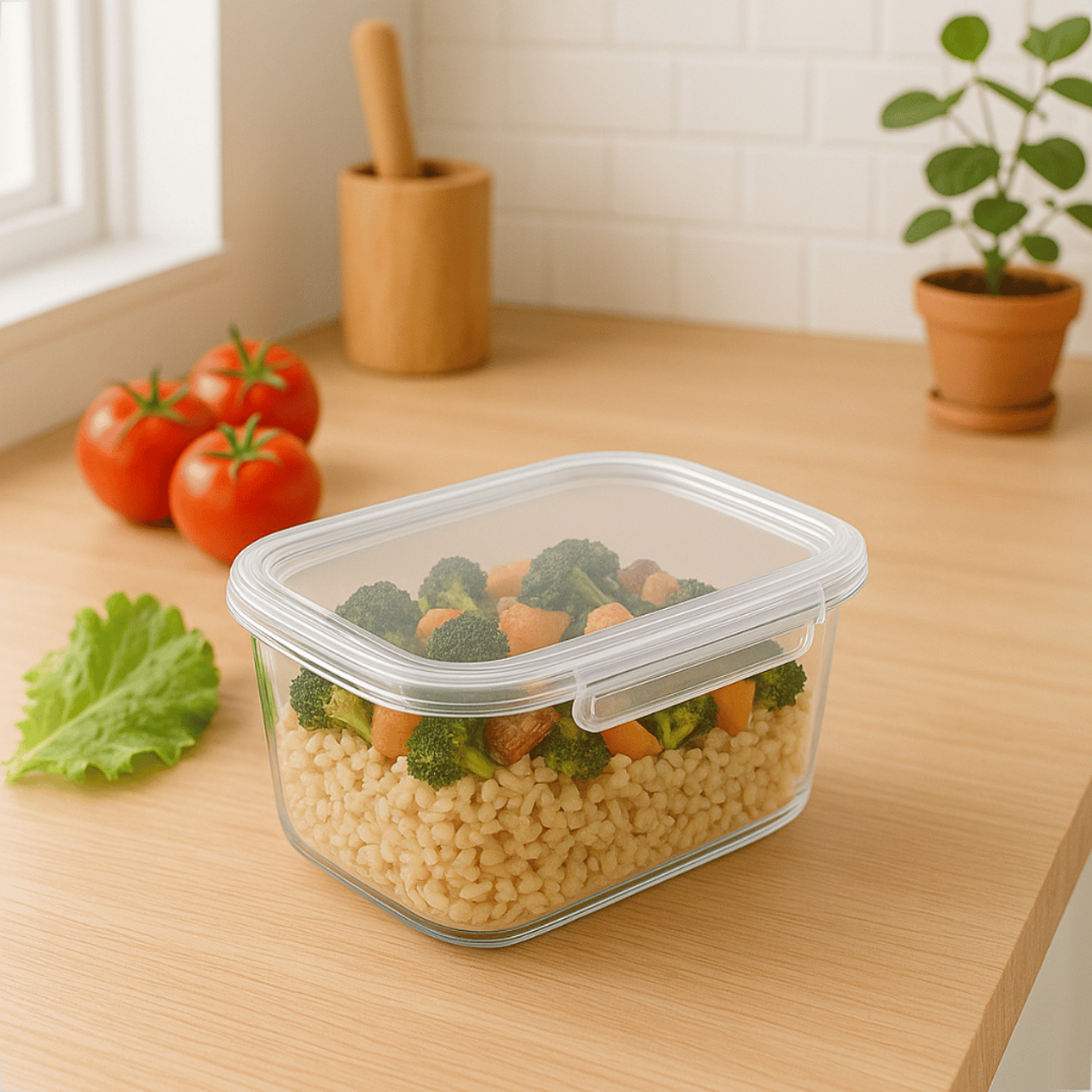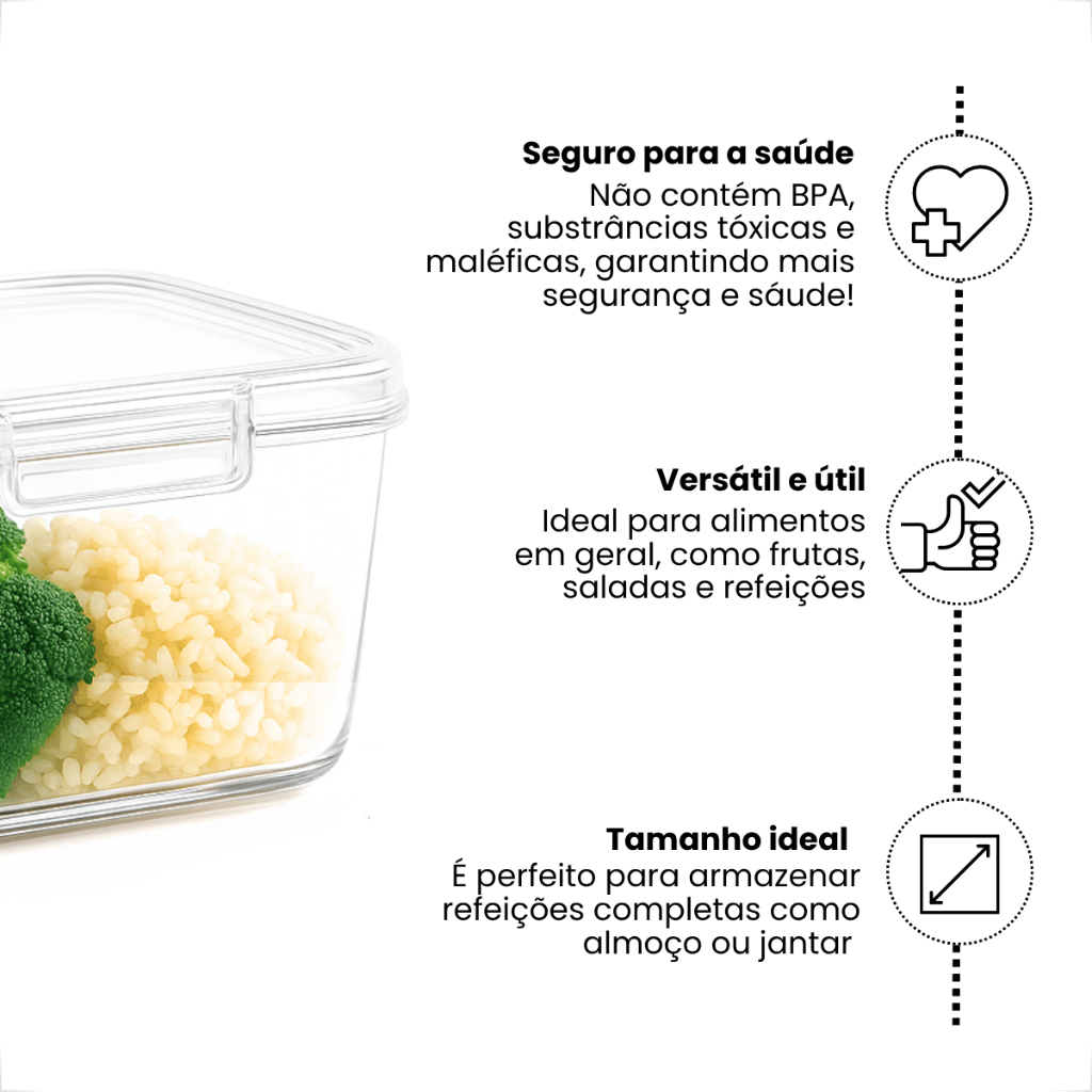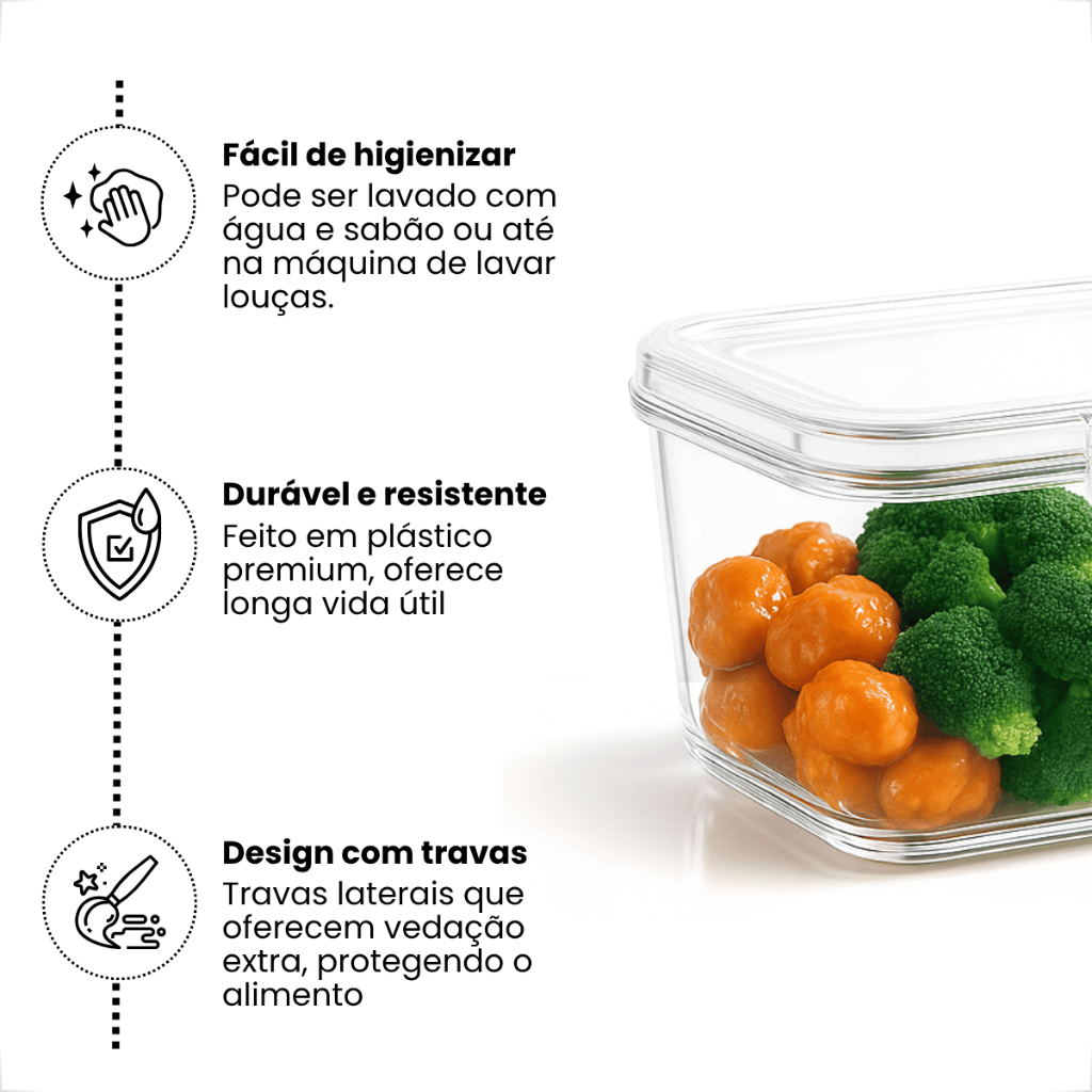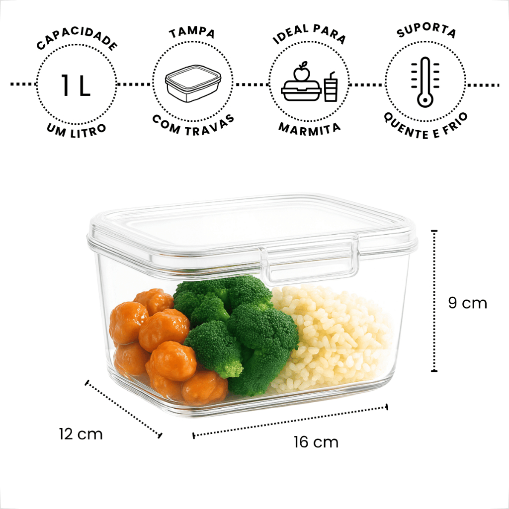 Potes de Plástico 1L Marmita Fitness Reutilizável Vasilha Transparente Tampa Hermética