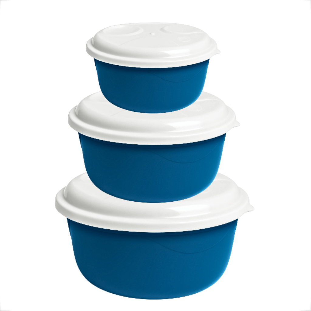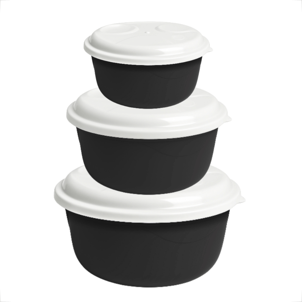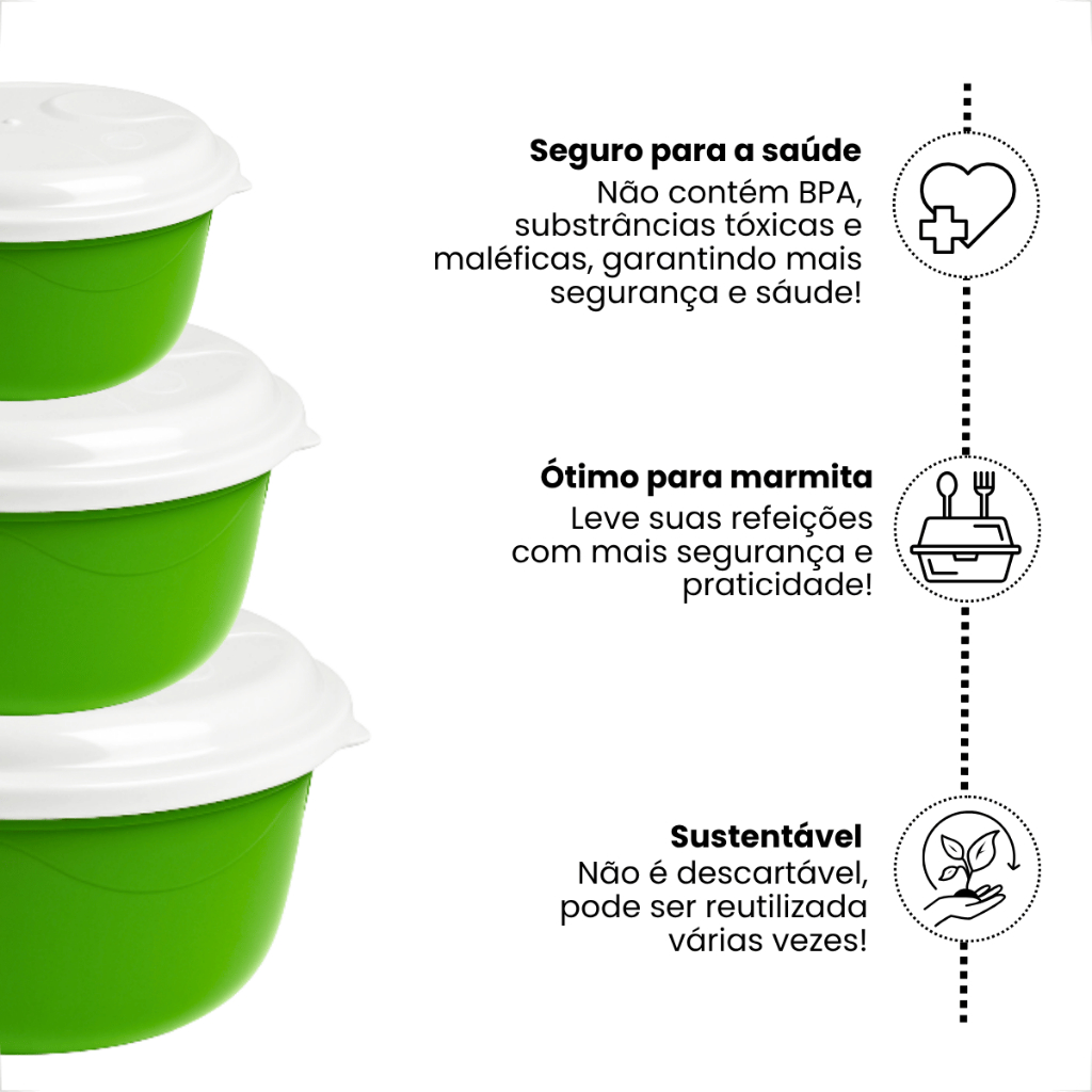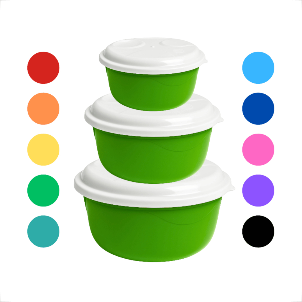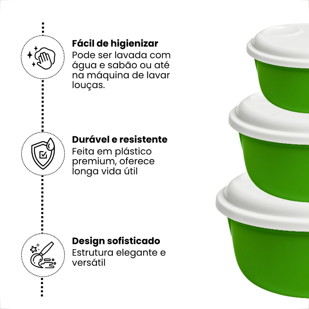 Kit 3 Potes Organizadores Plástico Redondo Tampa Branca Trio P M G