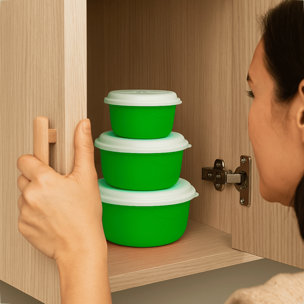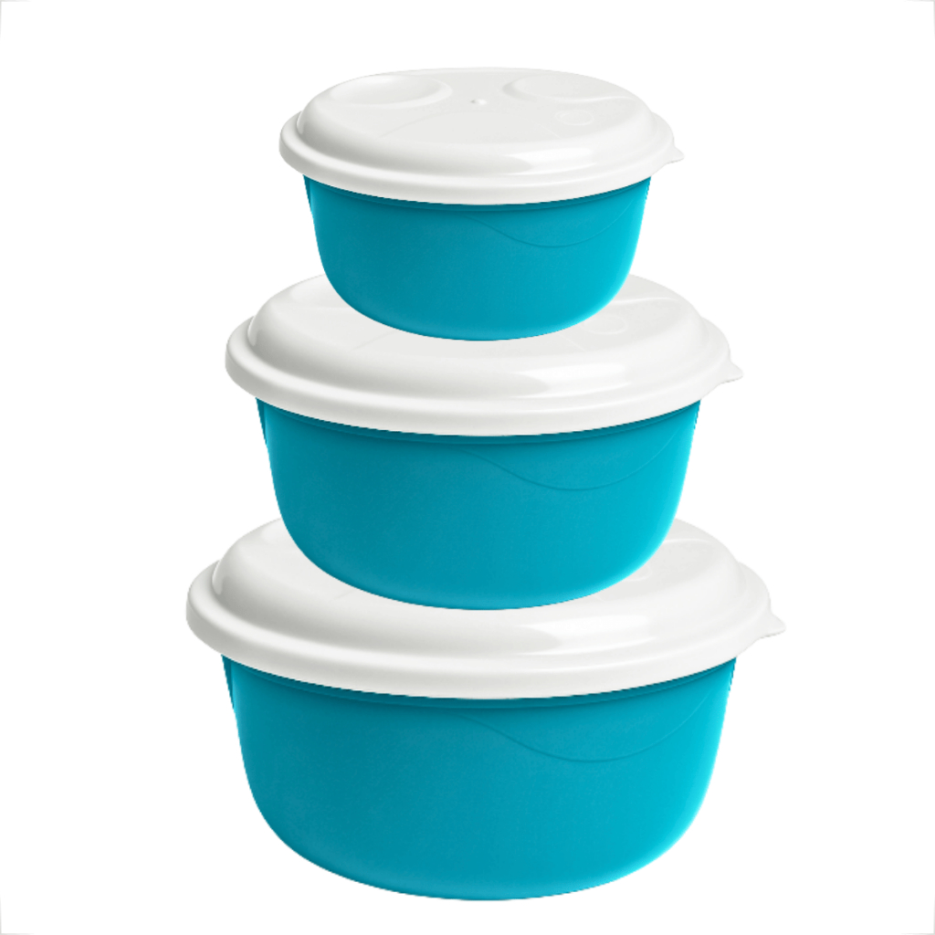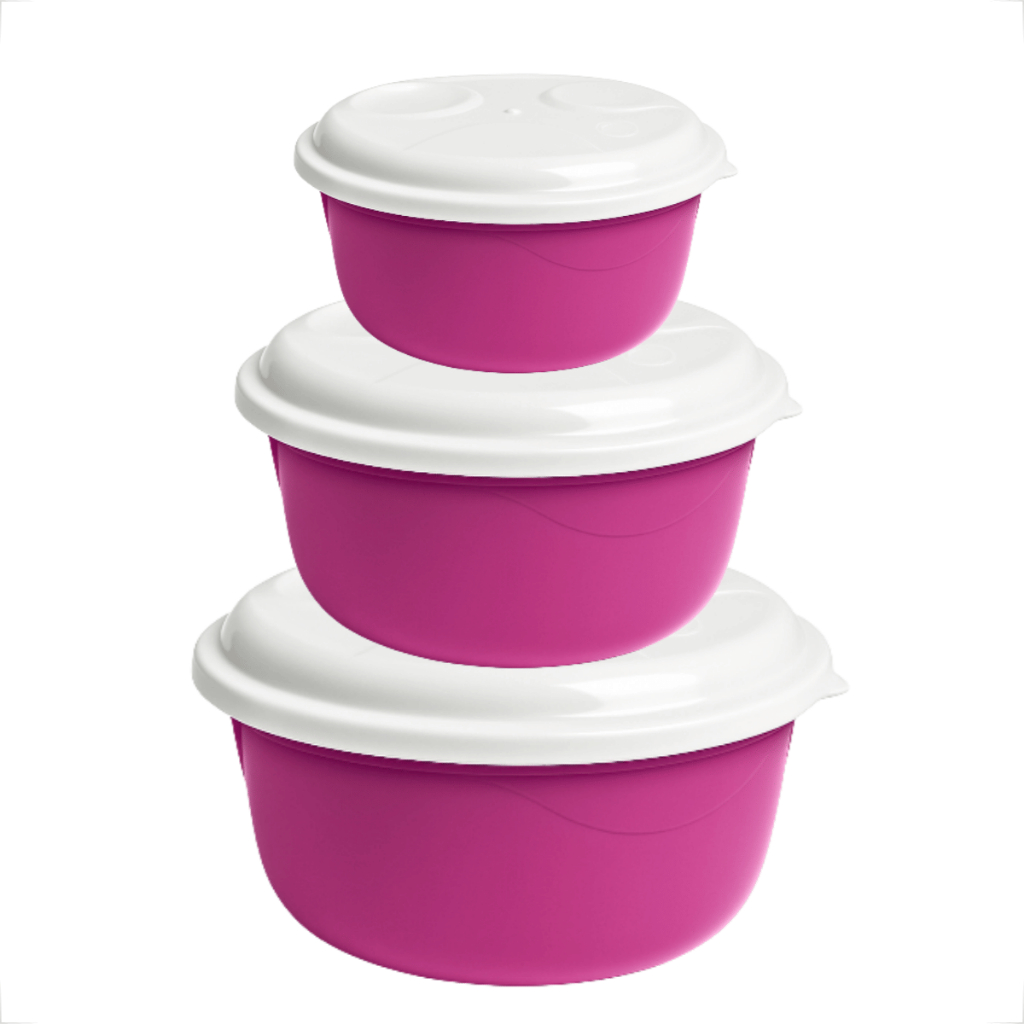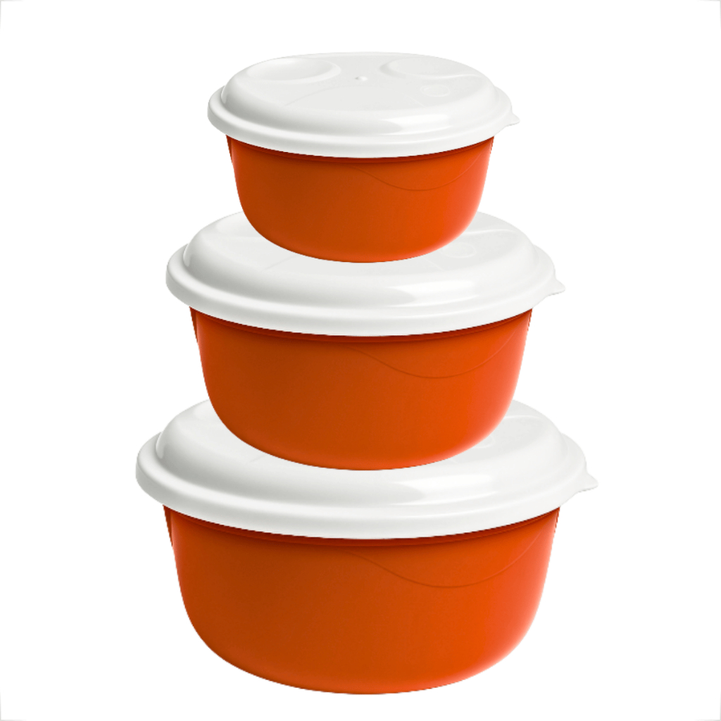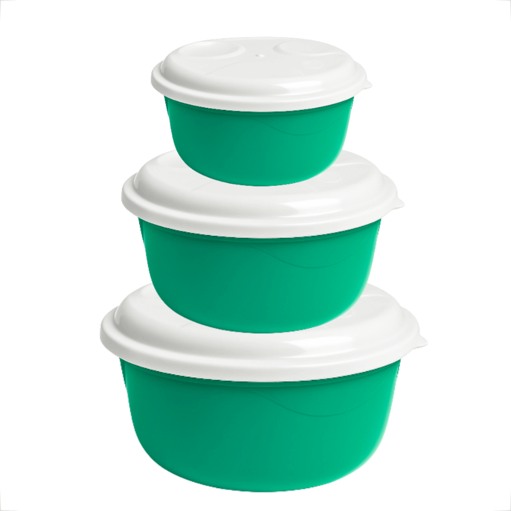 Kit 3 Potes Organizadores Plástico Redondo Tampa Branca Trio P M G