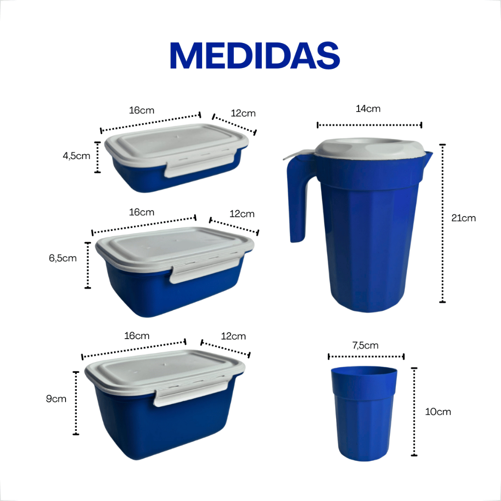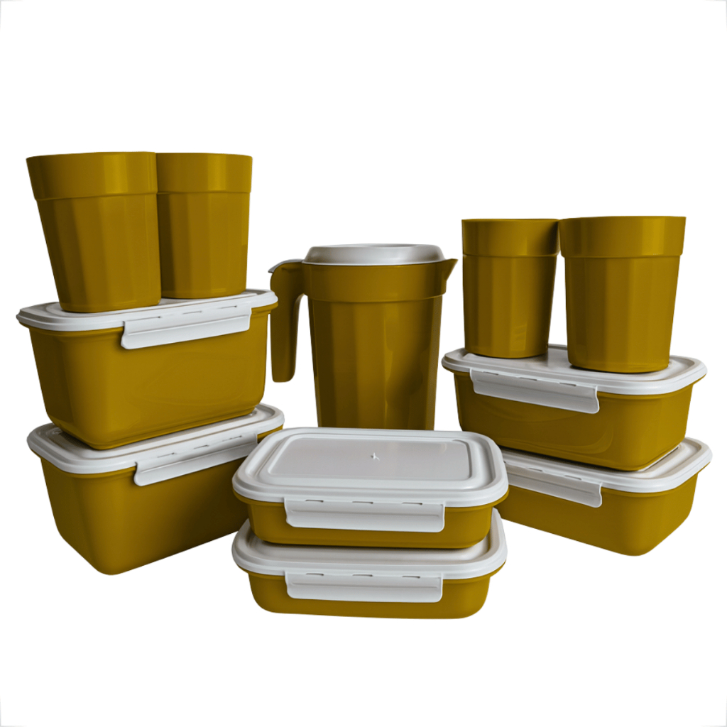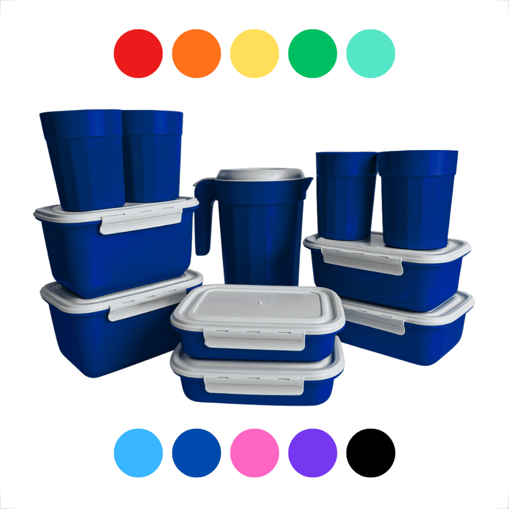 Kit Completo Cozinha 11 Peças – Potes, Copos e Jarra Plástica com Tampas Brancas