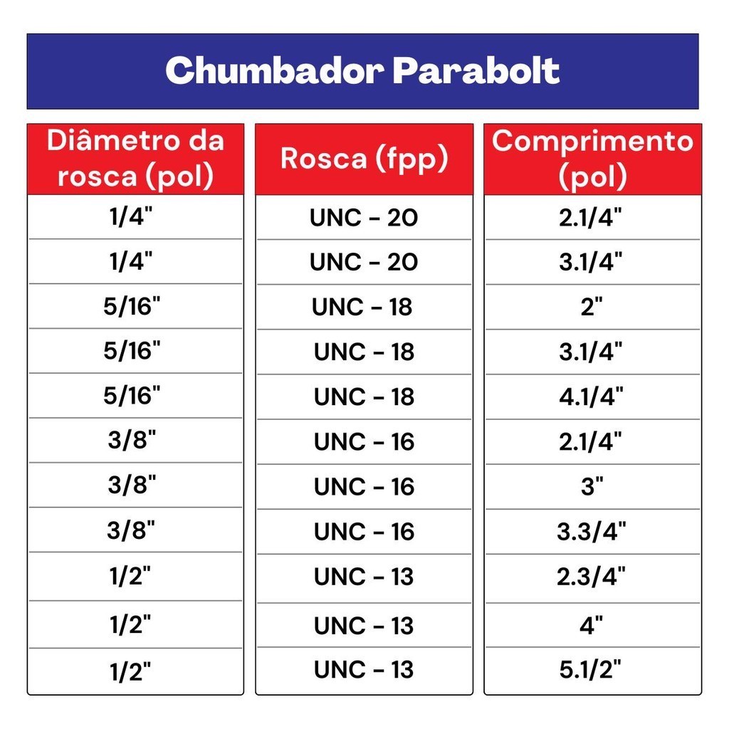 Kit Chumbador Parabolt 1/4 x 3.1/4'' - 25,0002 (Com 10 Unidades) - Nord