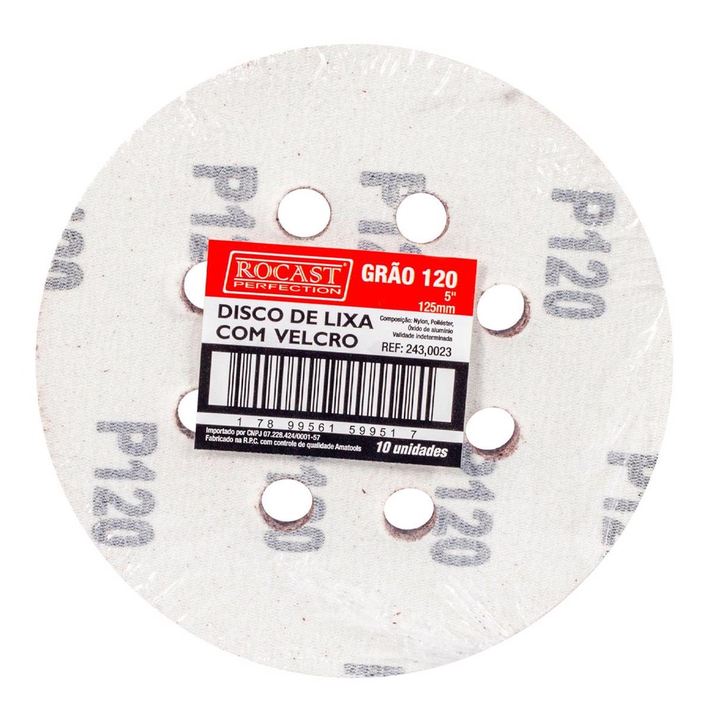 Disco de Lixa Com Velcro 5'' GR. 120 Com 10 Unidades (243,0023) - Rocast