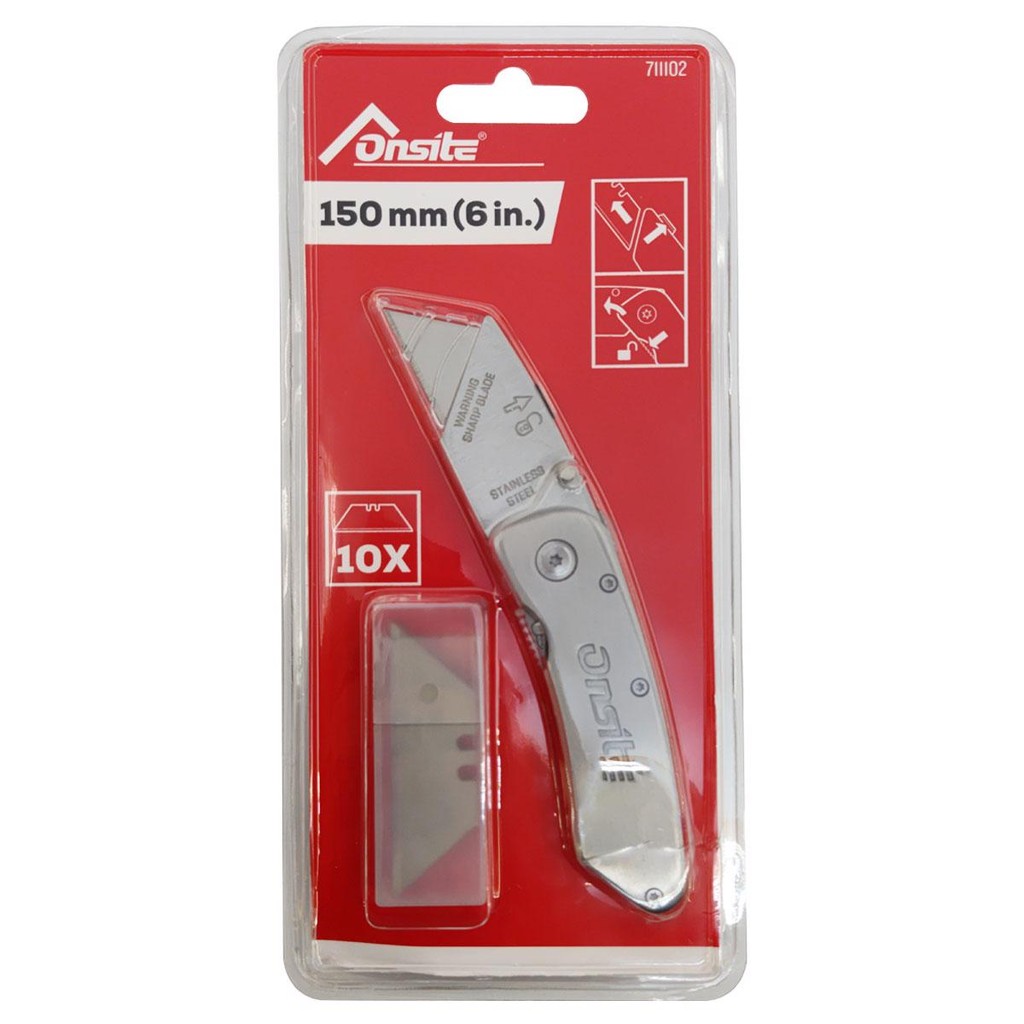 Estilete Dobrável Trapezoidal 150mm Com 10 Lâminas (711102) - Onsite