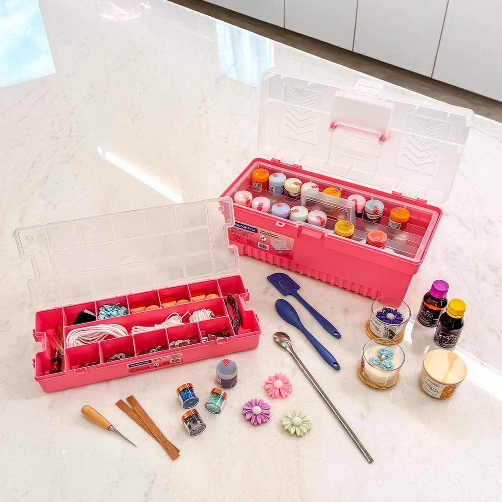 Caixa Plástica Para Ferramentas Com Bandeja Removível 17'' Rosa (43804/517) - Tramontina