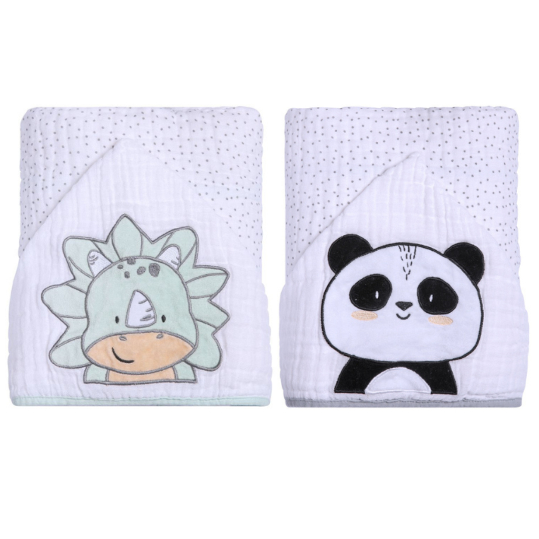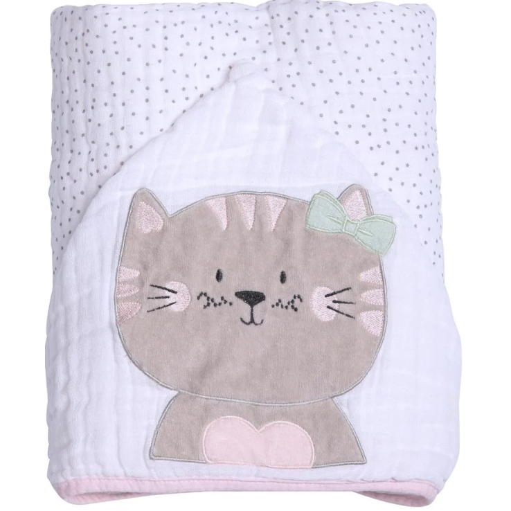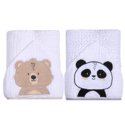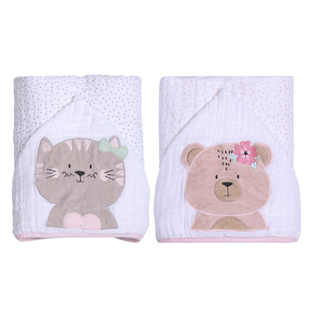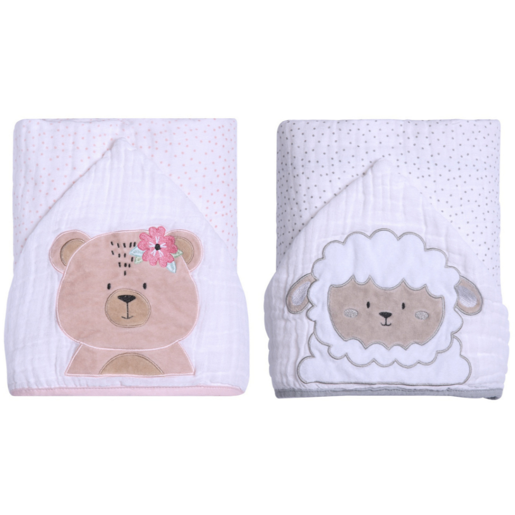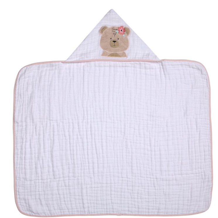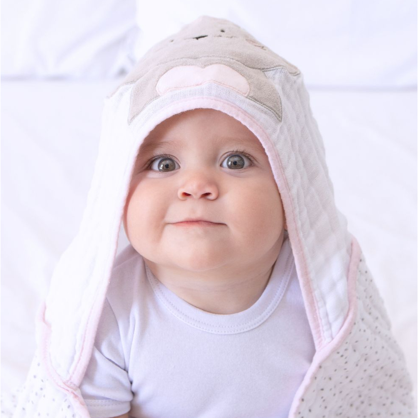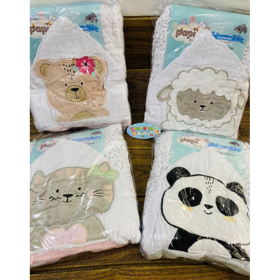 TOALHA DE BANHO SOFT PAPI FRIENDS C/ CAPUZ 3 CAMADAS BORDADO 90CM X 75CM CONTEM 01 UN 1923