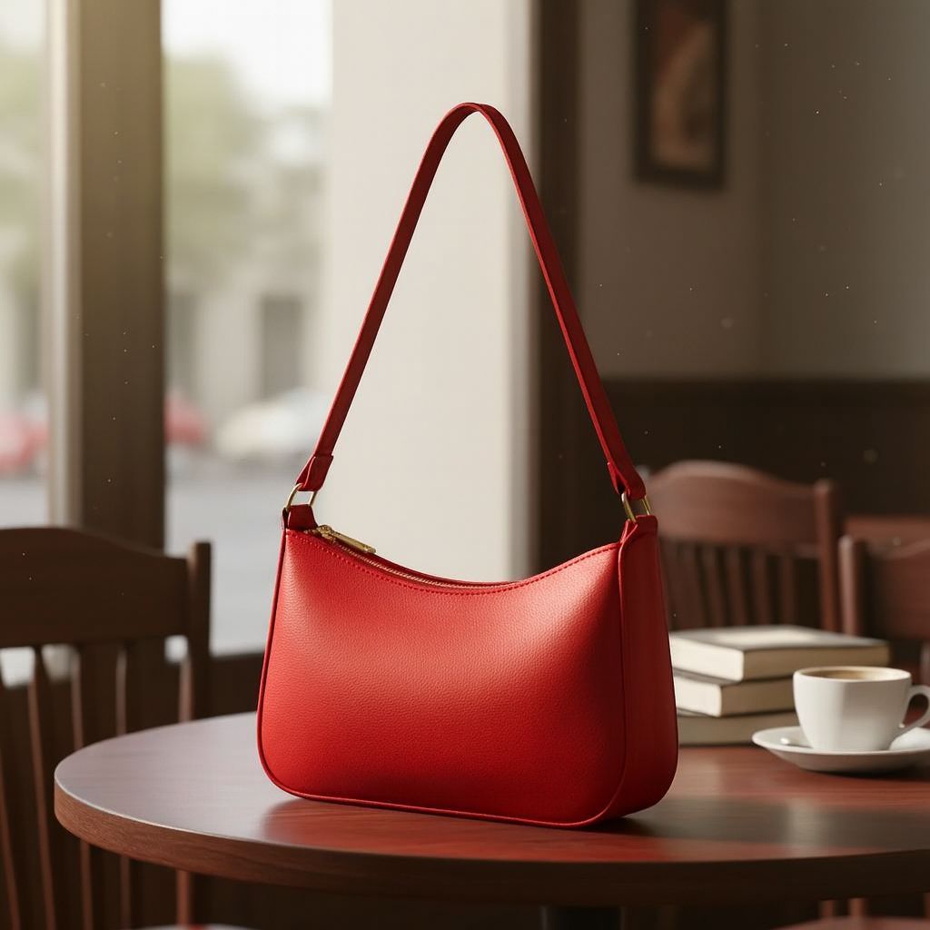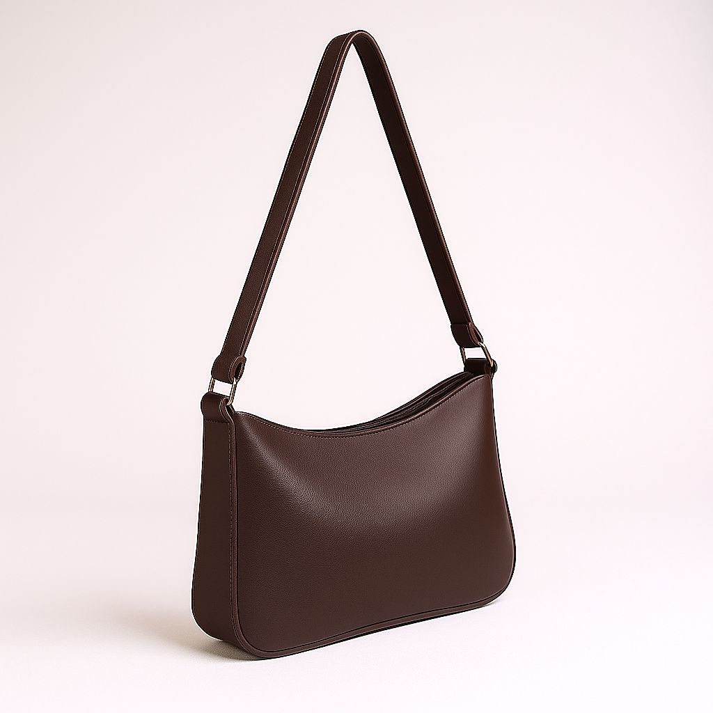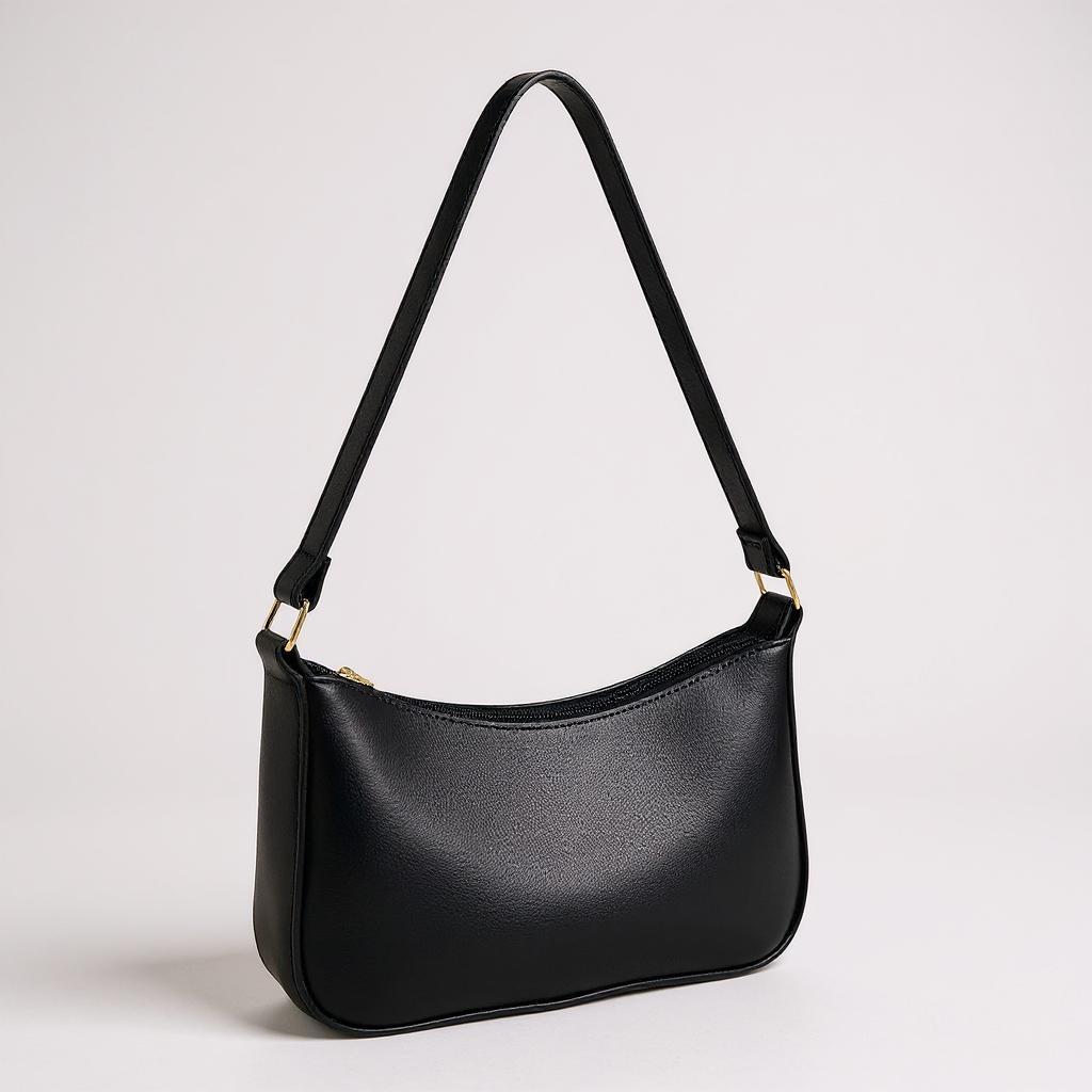 Bolsa de ombro baguete feminina , Bolsa lua com detalhes em dourado e fecho em ziper