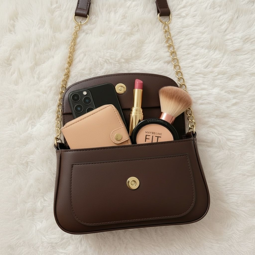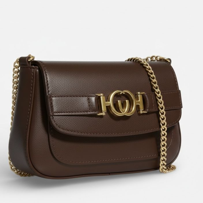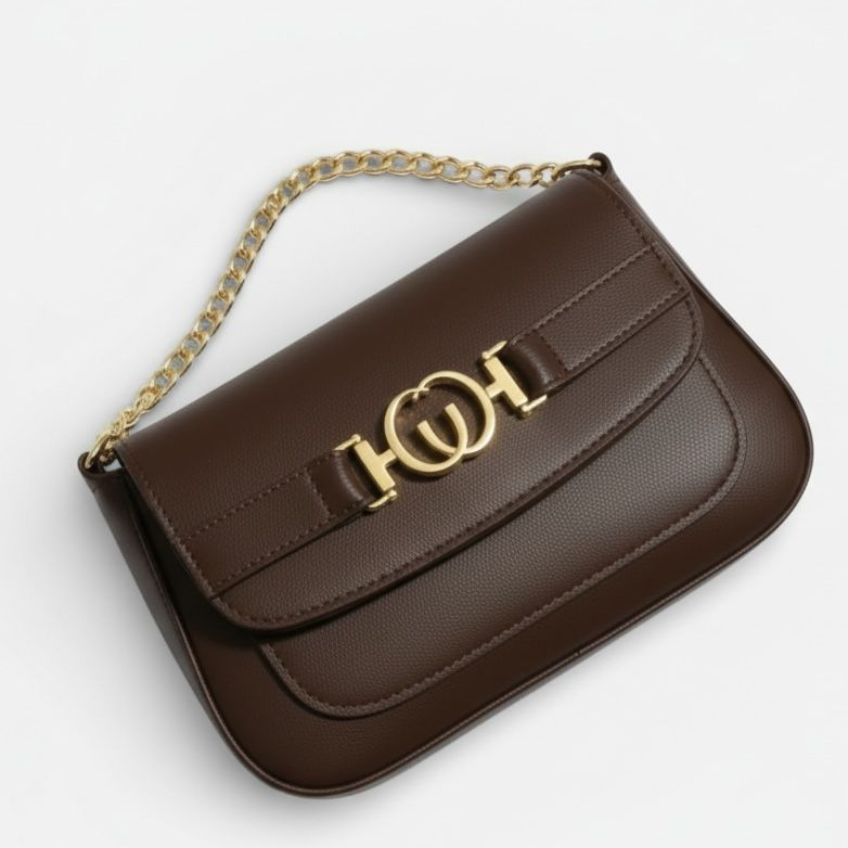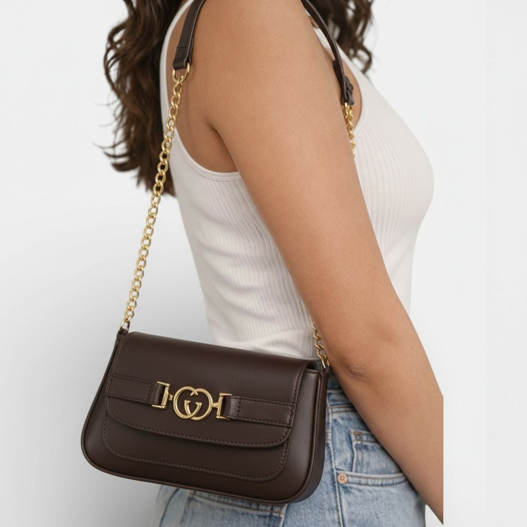 Bolsa de ombro feminina com alça de corrente, Bolsa luxo com detalhes em dourado e bolso externo