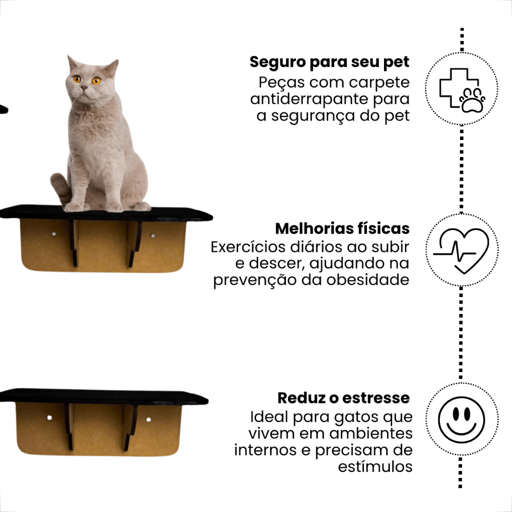 Kit 4 Prateleiras Diversão Para Gatinhos Com Carpete Antiderrapante