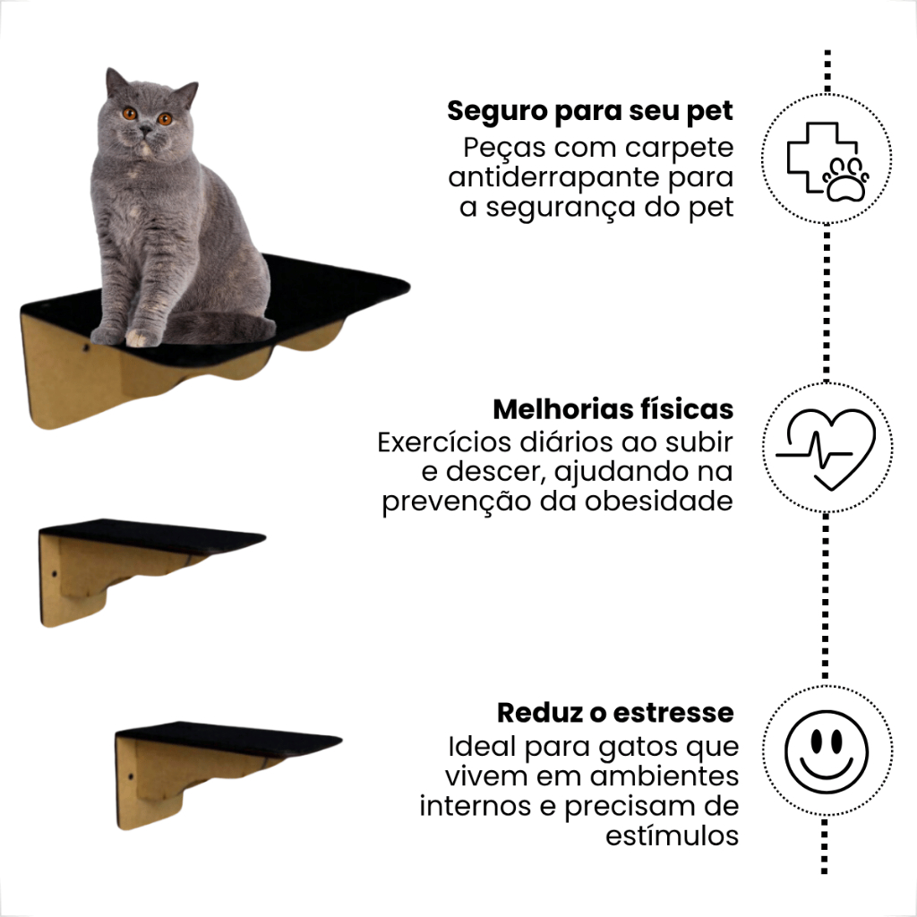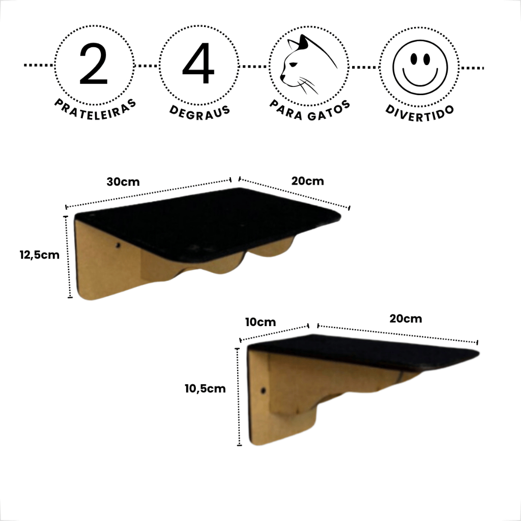 Kit 6 Peças Para Gatos 2 Prateleiras + 4 degraus