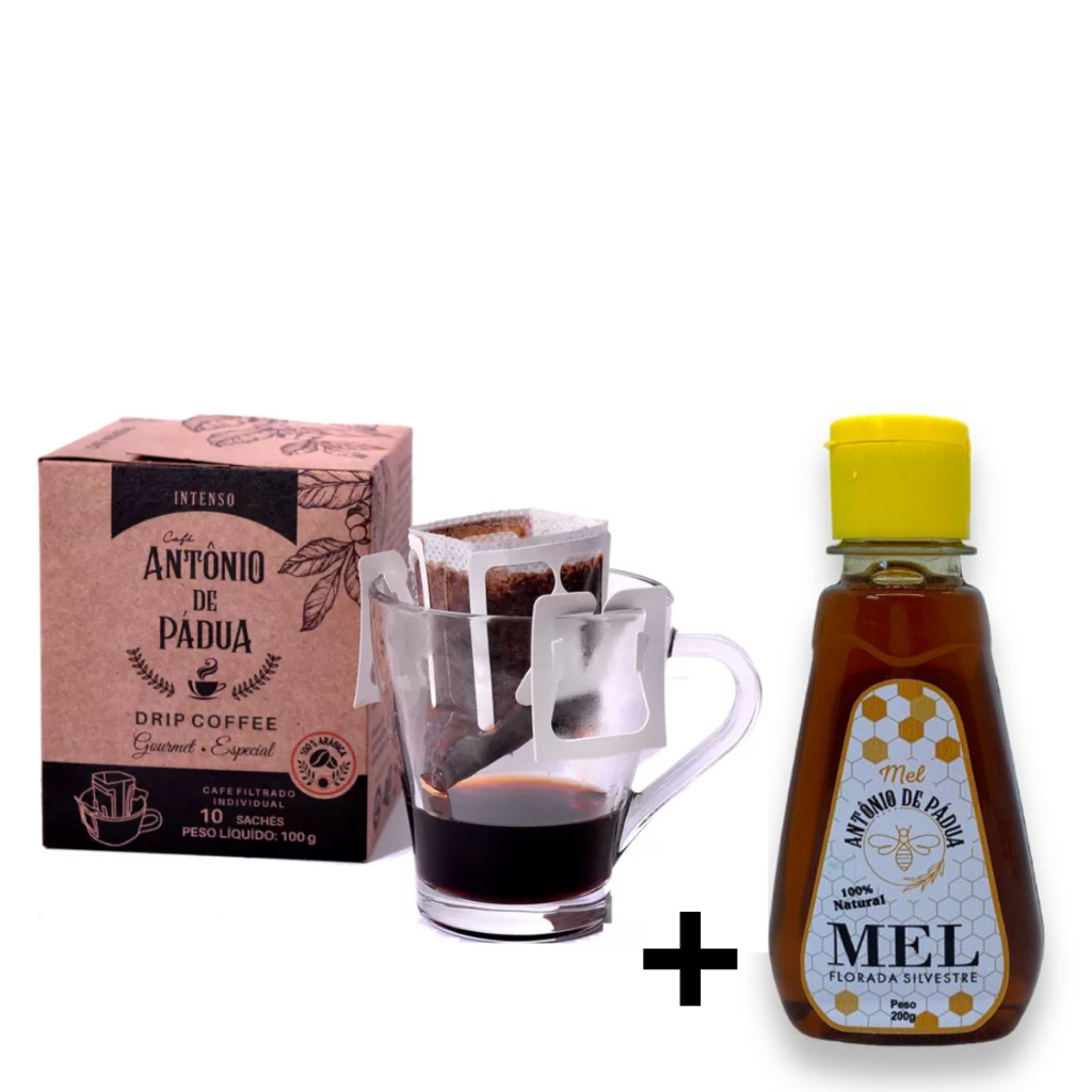 10 Sachês de Drip Coffee + Mel Natural de 200g Café de bolso Antônio de Padua