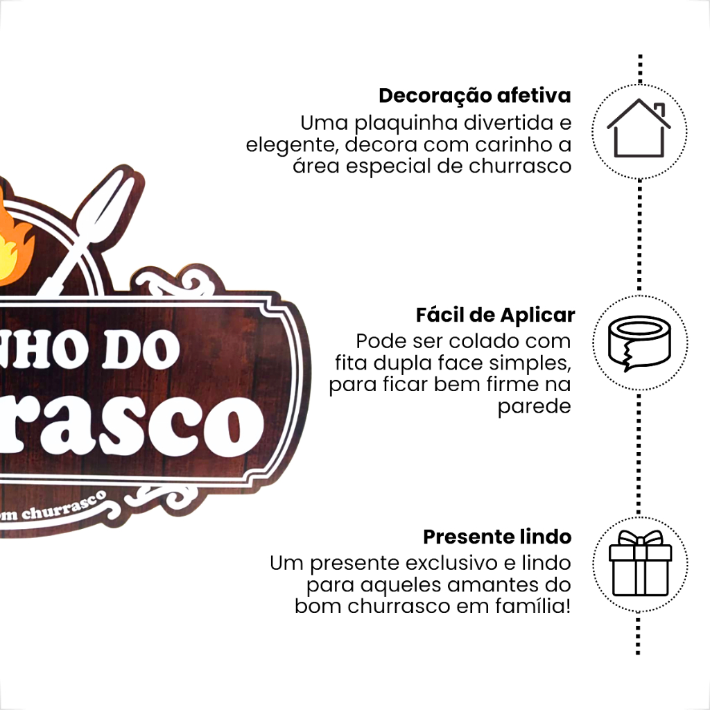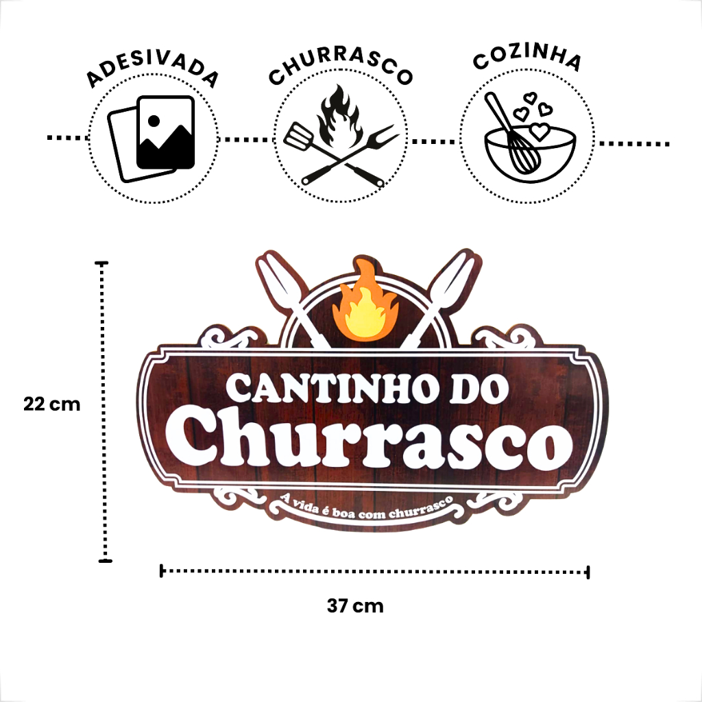 Placa Cantinho Do Churrasco Adesivada - 1 Peça 37x22cm Decorativos de Parede