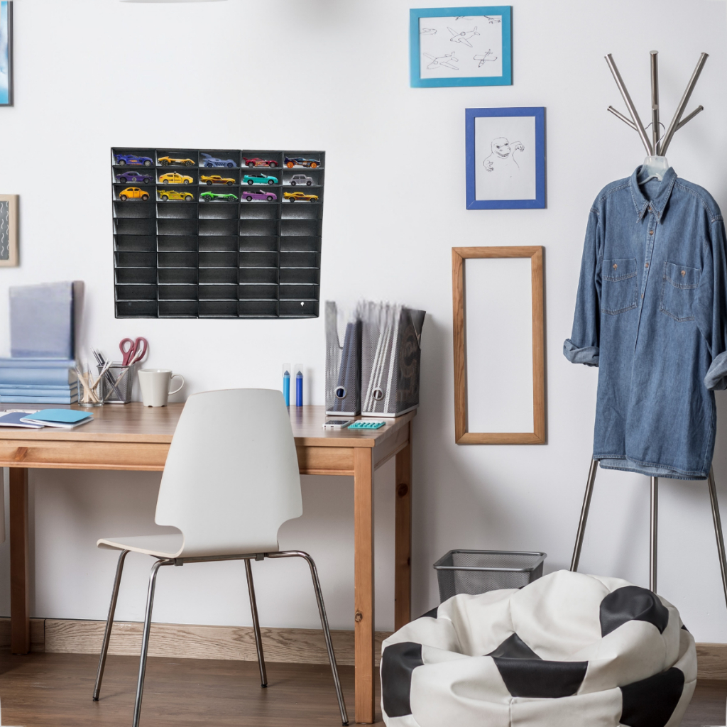 Suporte Porta Carrinhos Hot Wheels Colecionaveis Expositor 50 Espaços 4x10cm Madeira Mdf