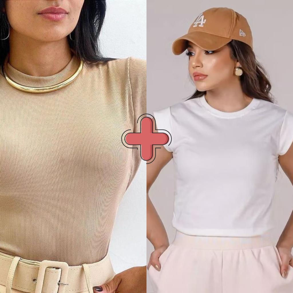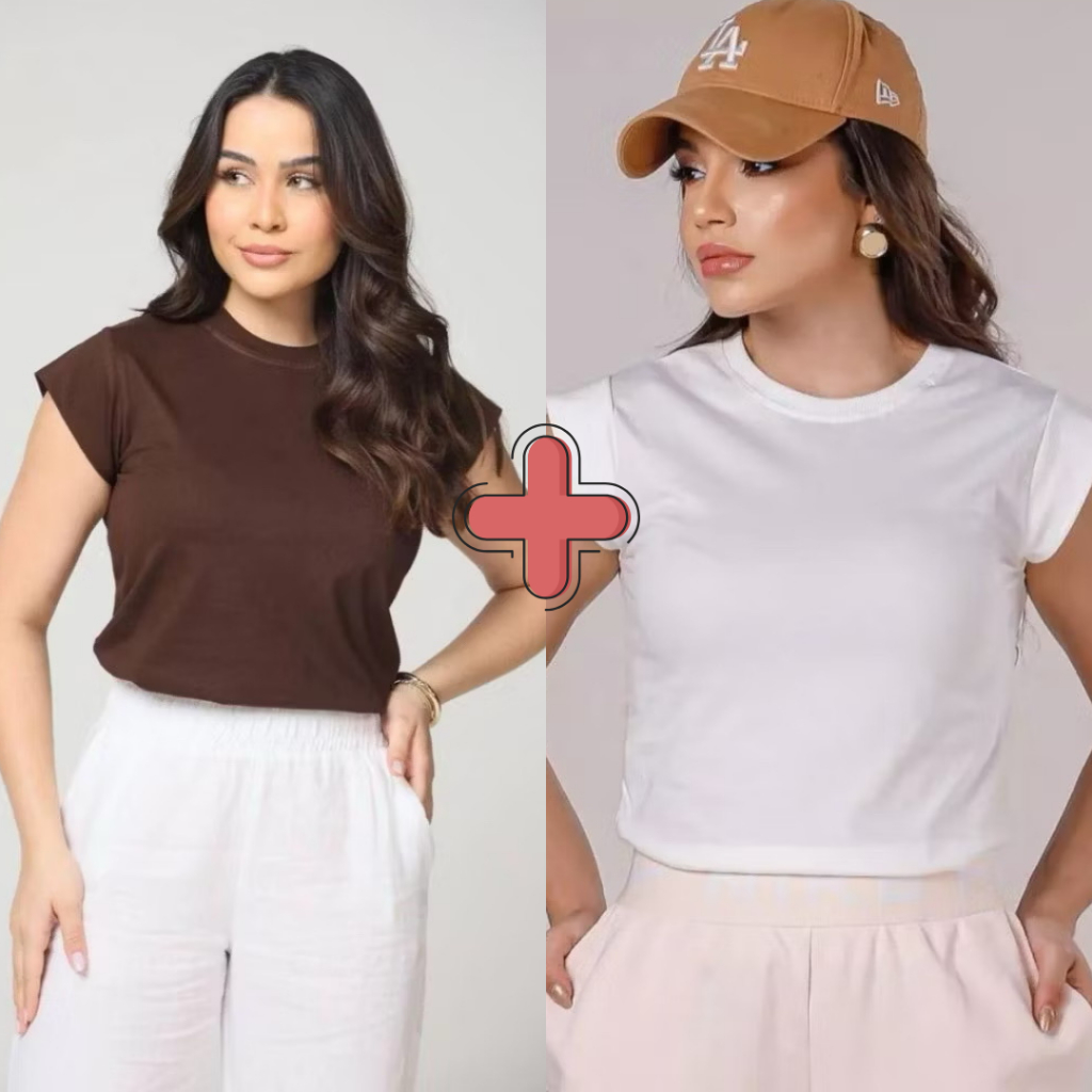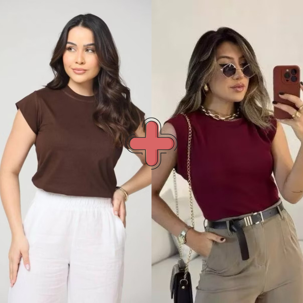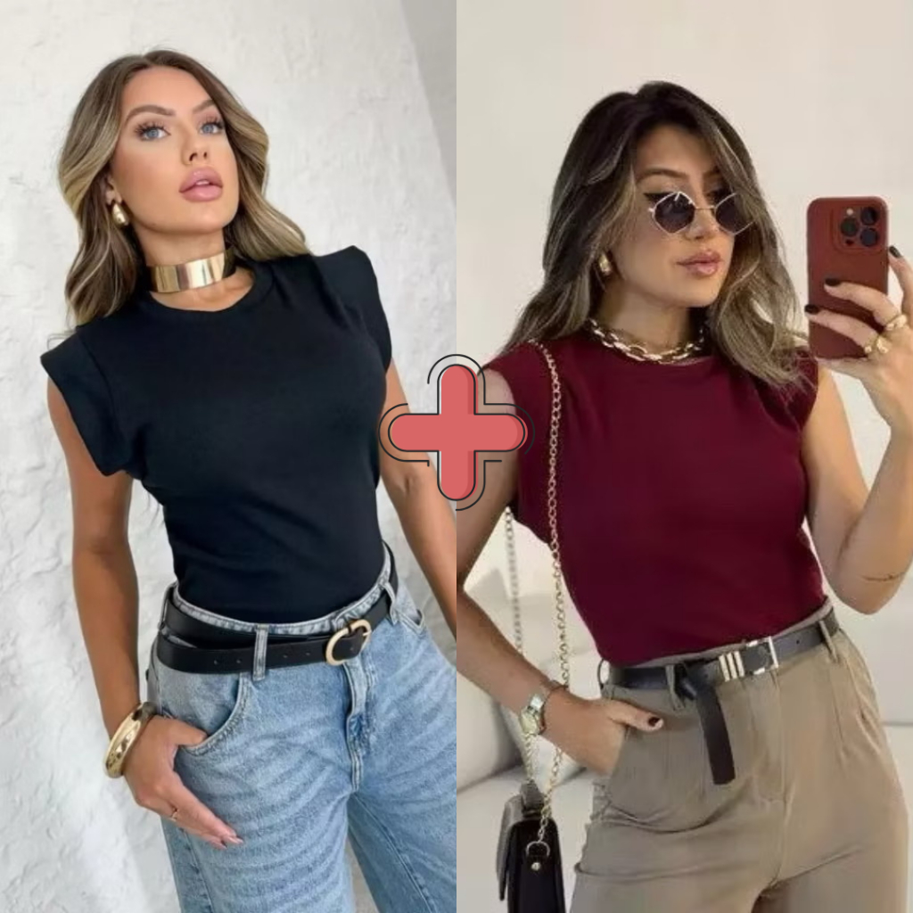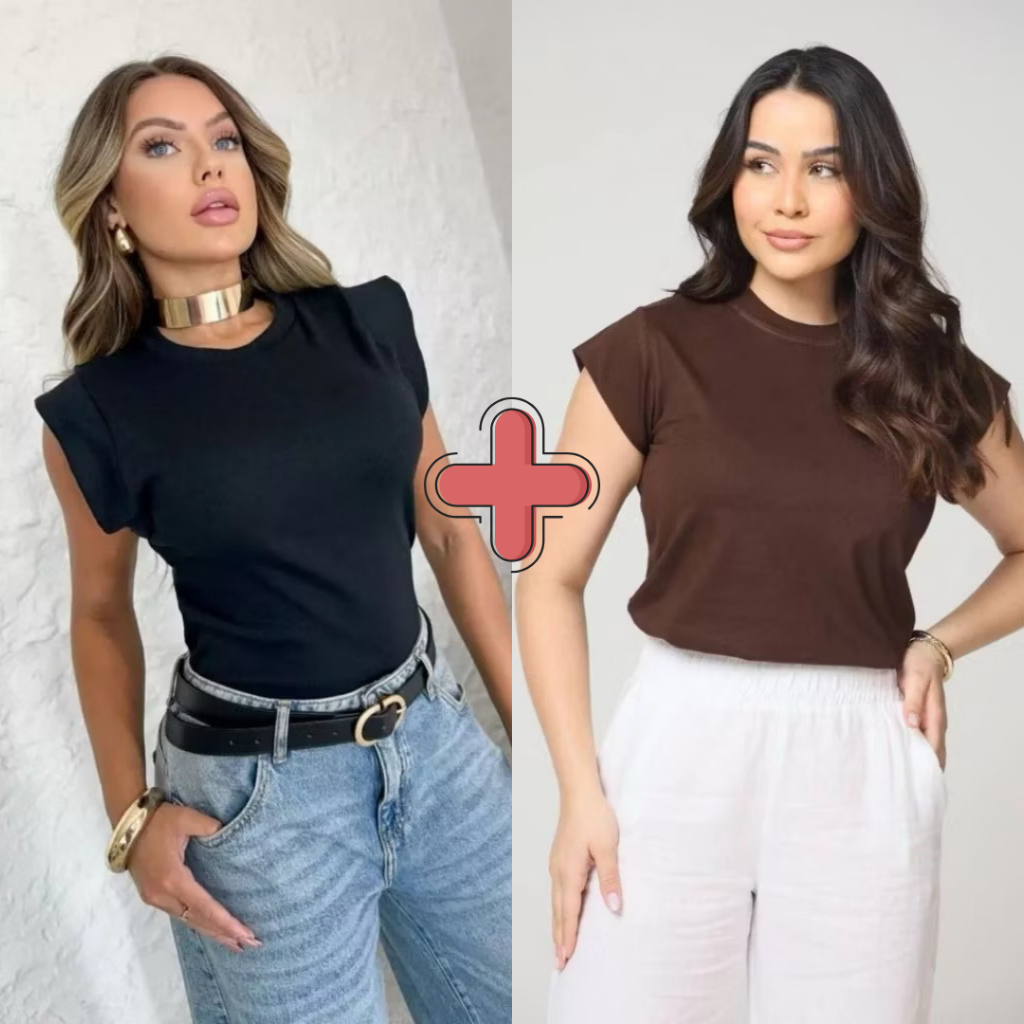 Kit 2 Blusas Femininaa Muscle Tee Lisa Ribana Canelada Gola Redonda Básica Social Elegante