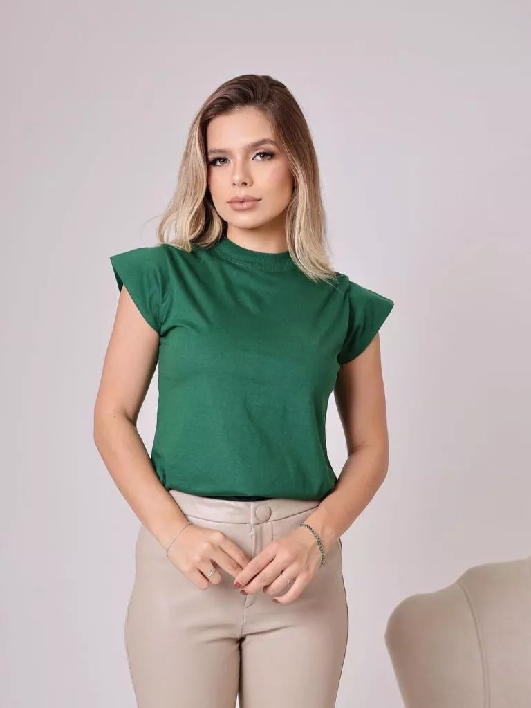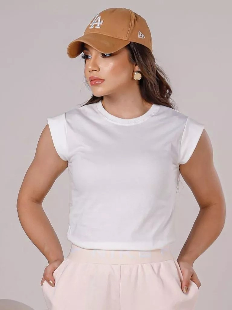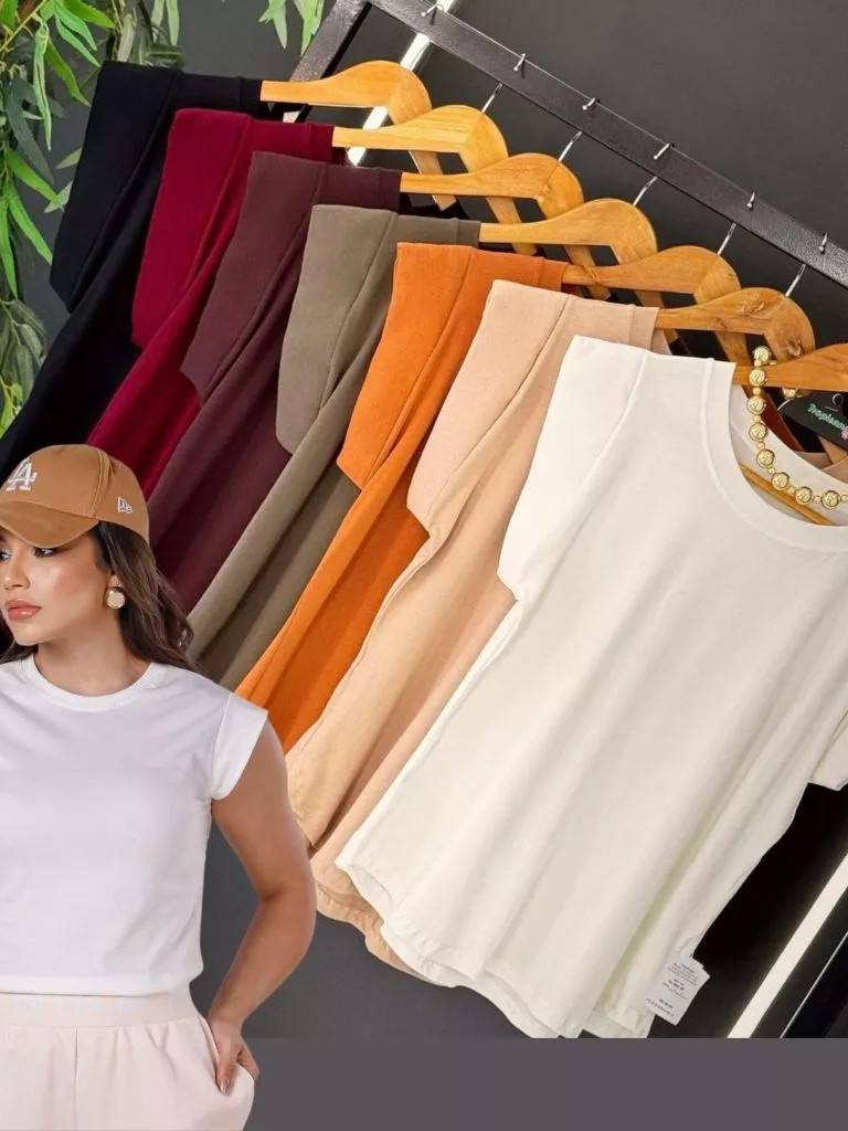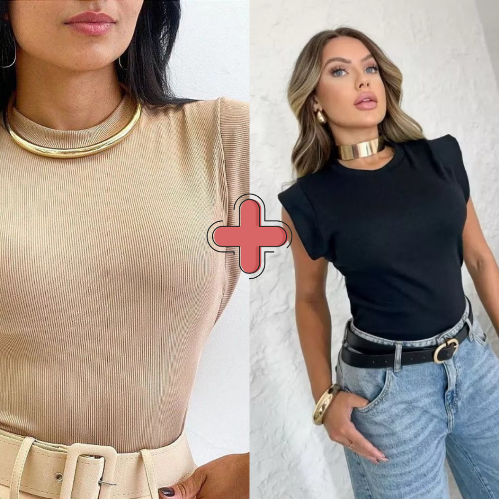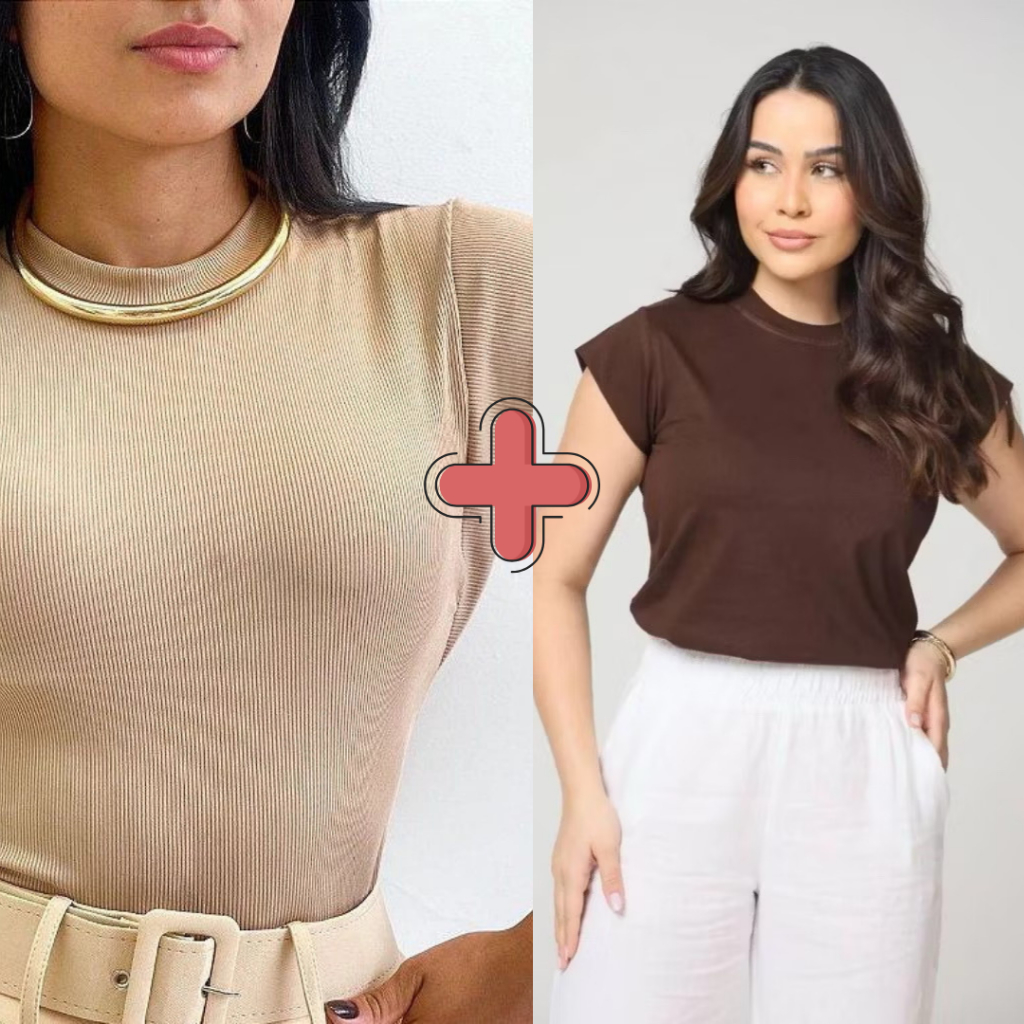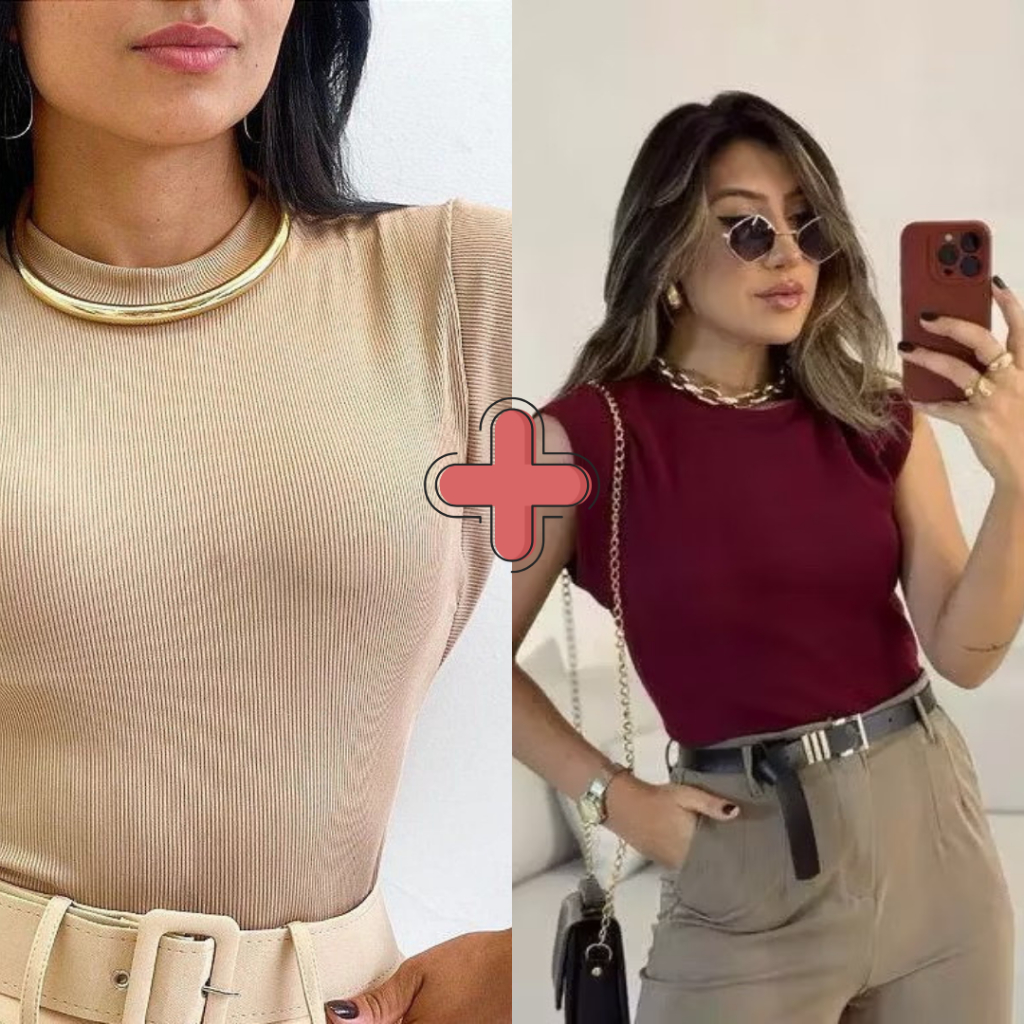 Kit 2 Blusas Femininaa Muscle Tee Lisa Ribana Canelada Gola Redonda Básica Social Elegante