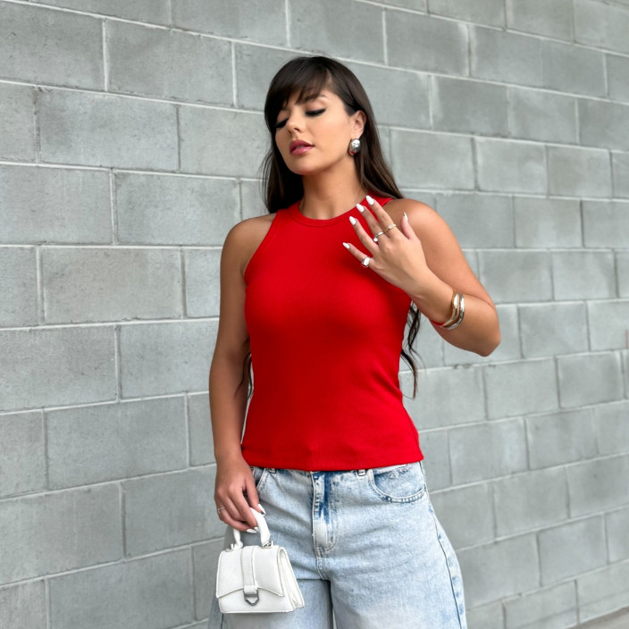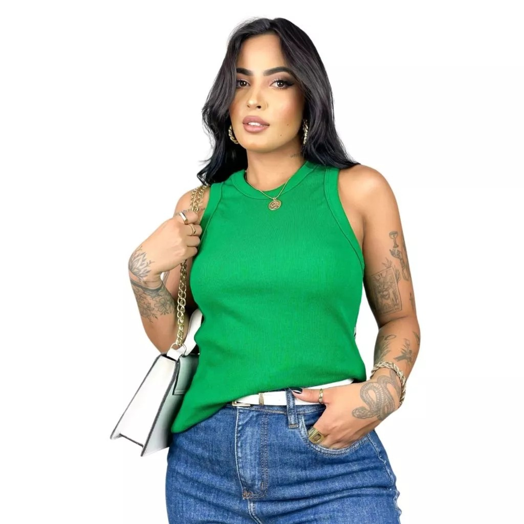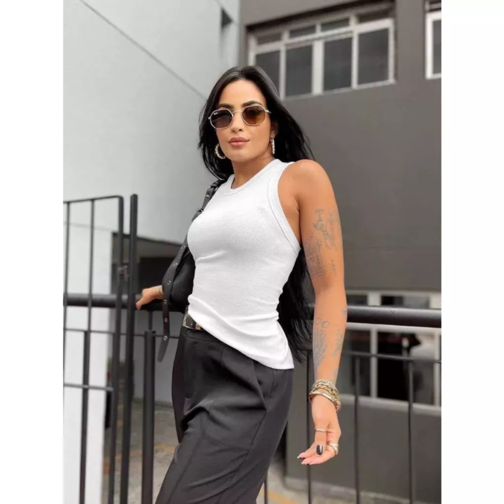 Regata Feminina Estilo Americana Tendência Verão Canelada Blusinha Básica