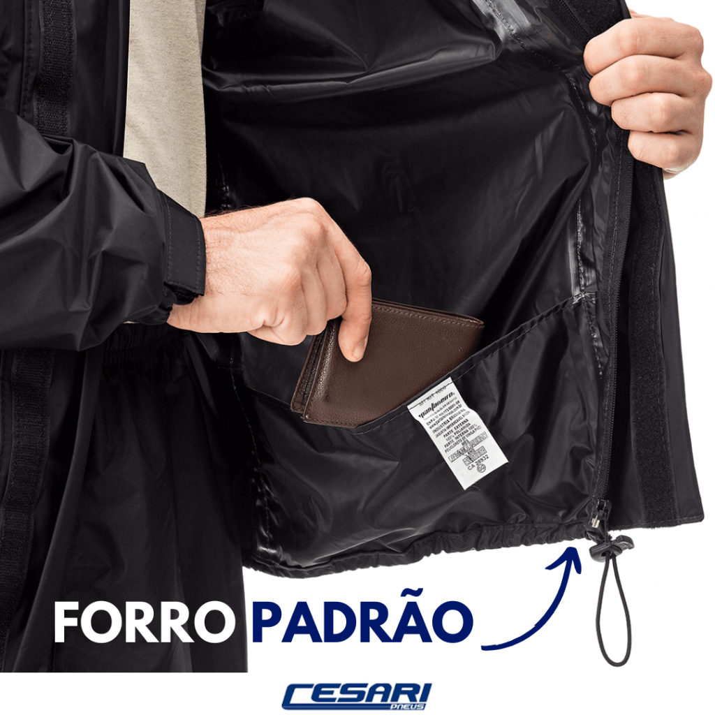 Capa De Chuva Motoqueiro Nylon Preto Pantaneiro Com Gola