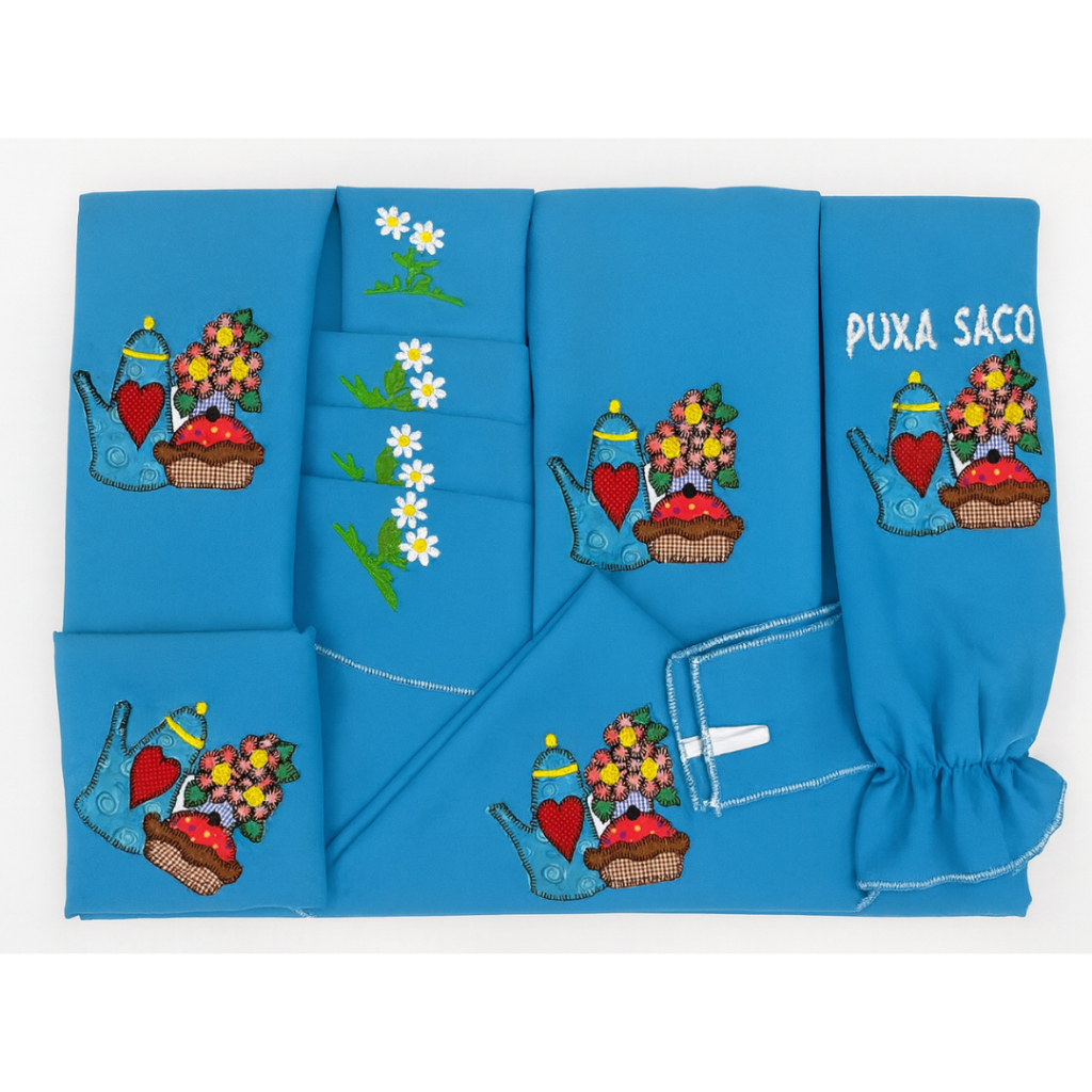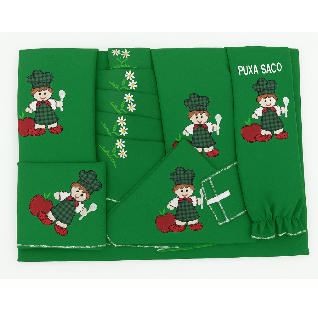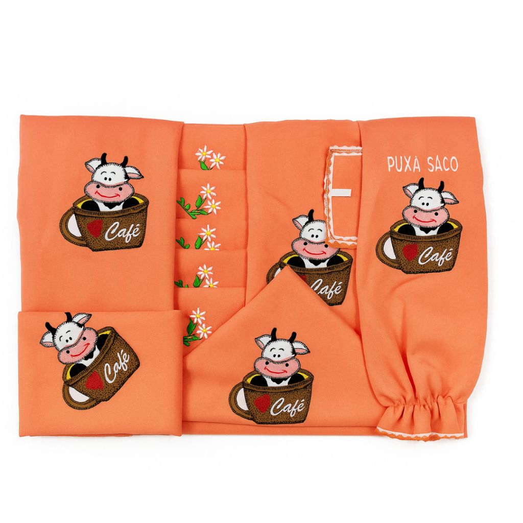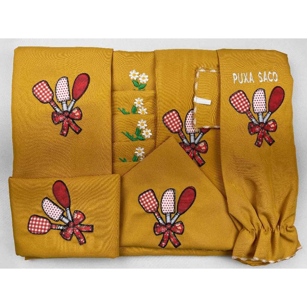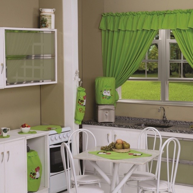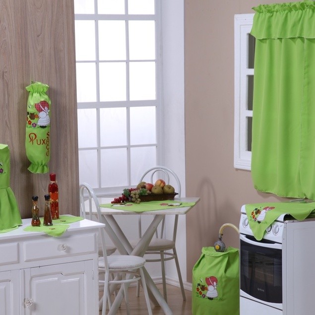 Kit Jogo de Cozinha 13 Peças em Tecido Oxford com Cortina e Toalha de Mesa
