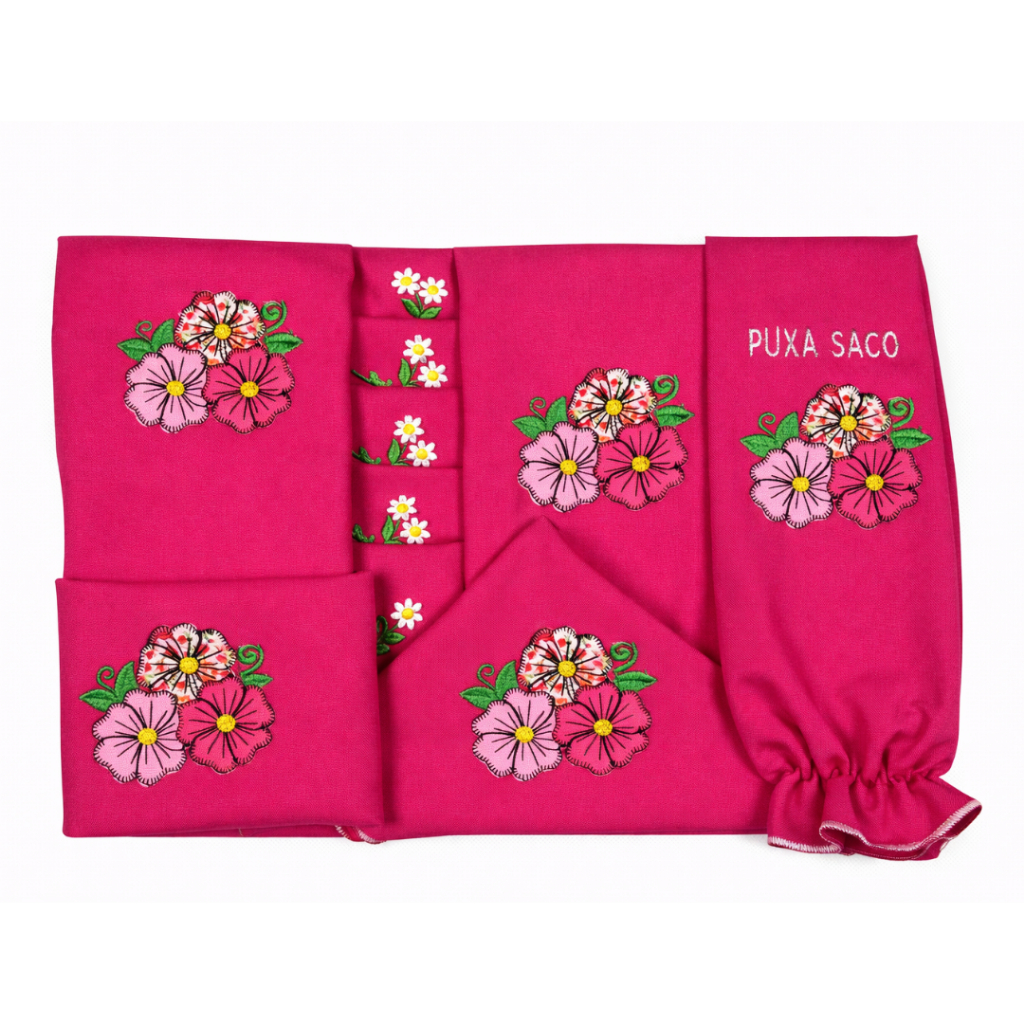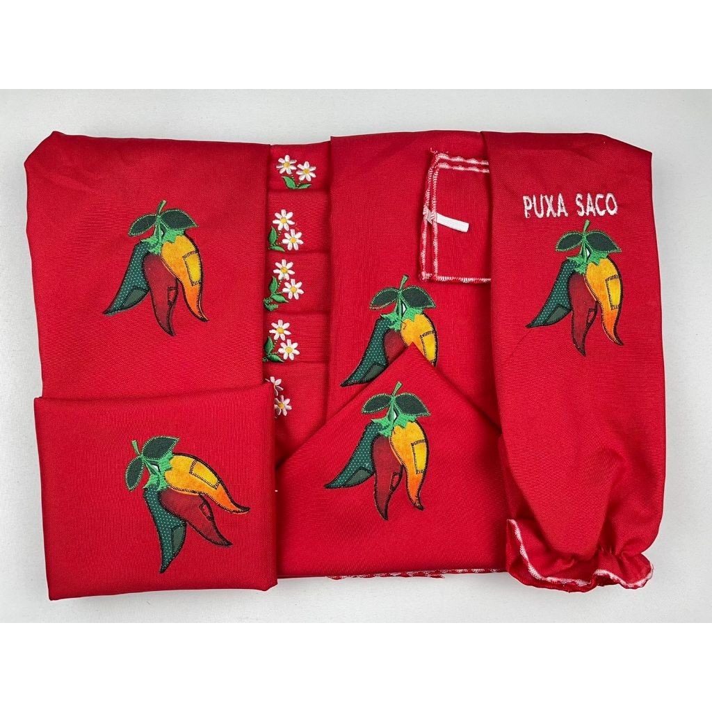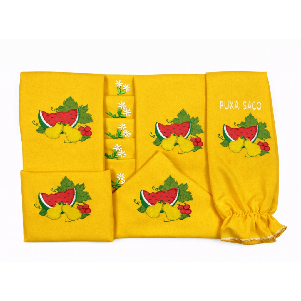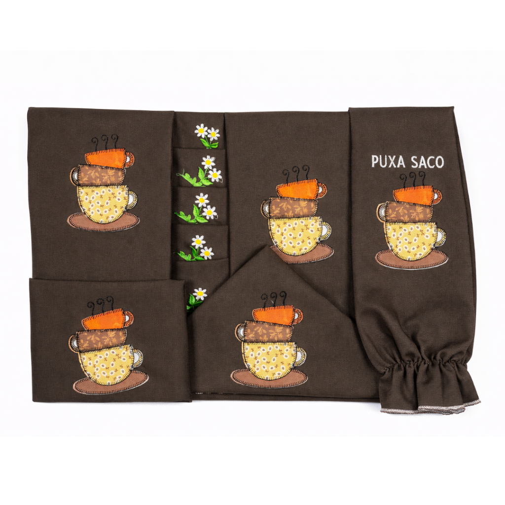Kit Jogo de Cozinha 13 Peças em Tecido Oxford com Cortina e Toalha de Mesa