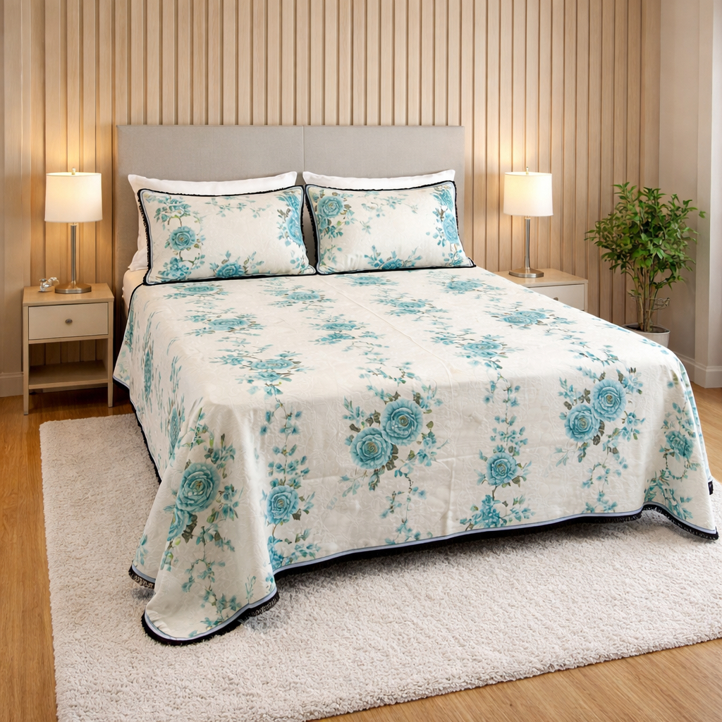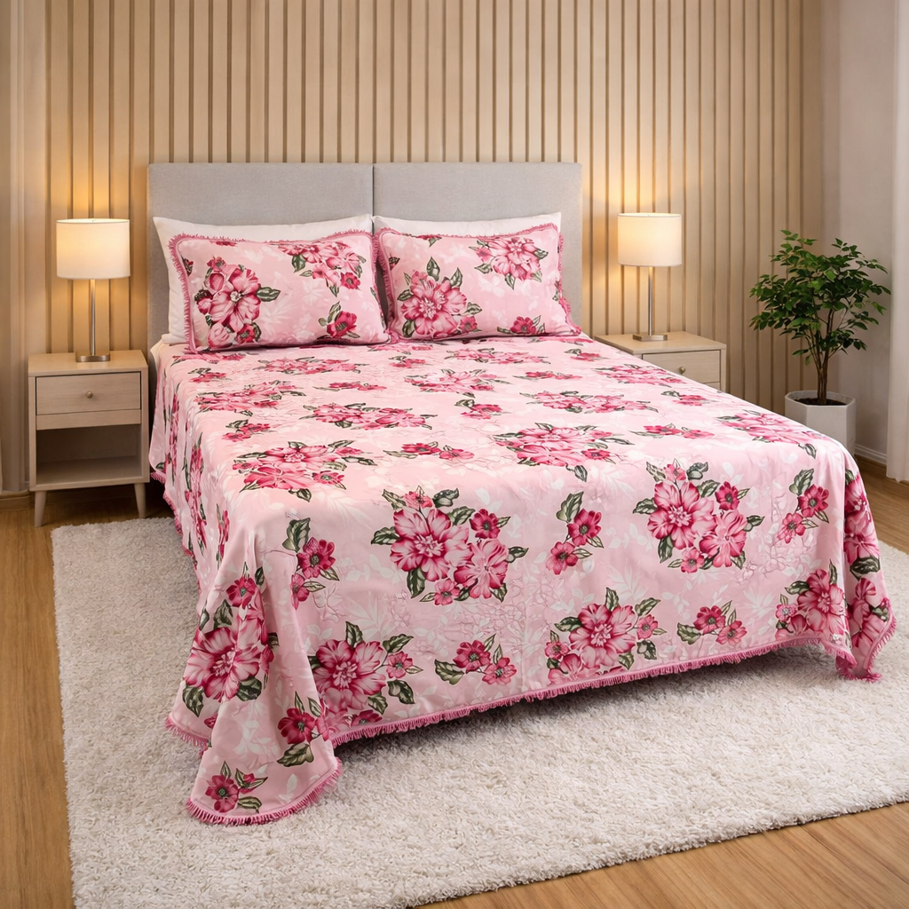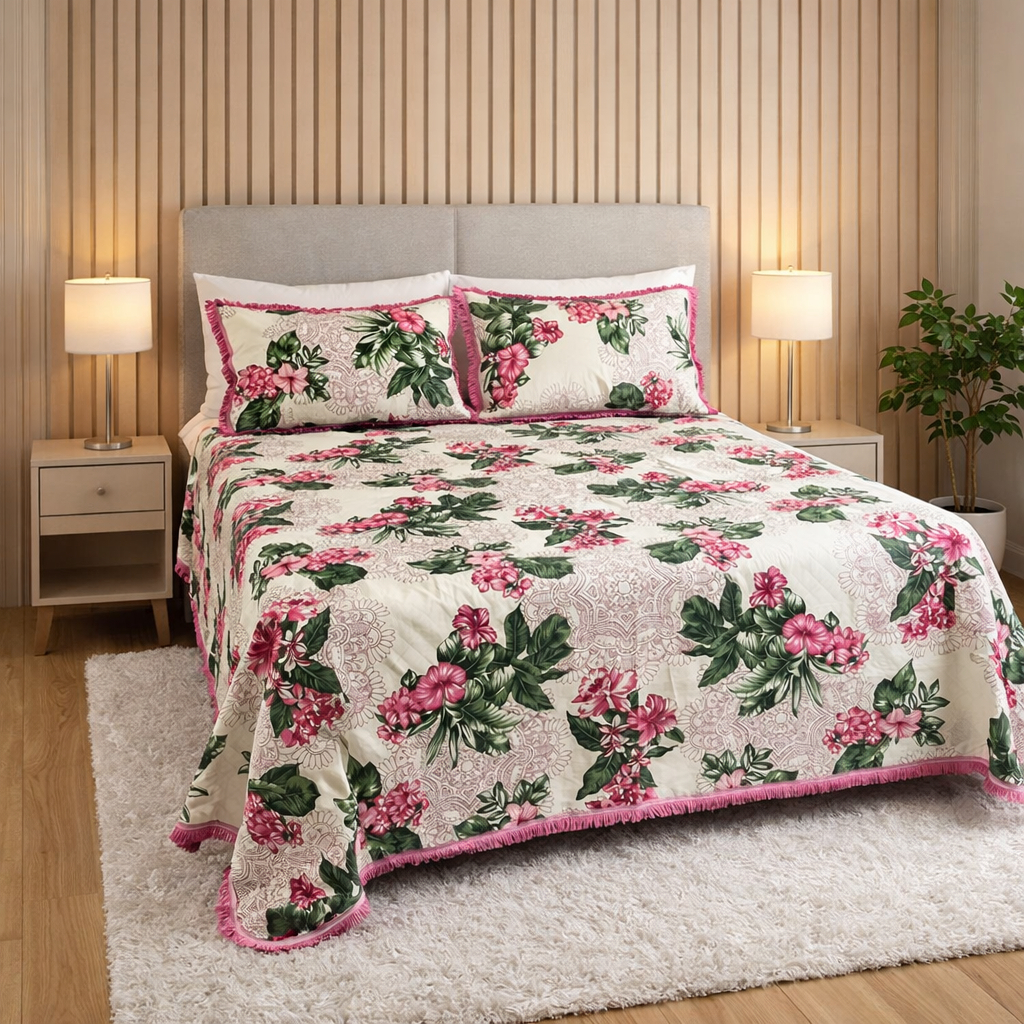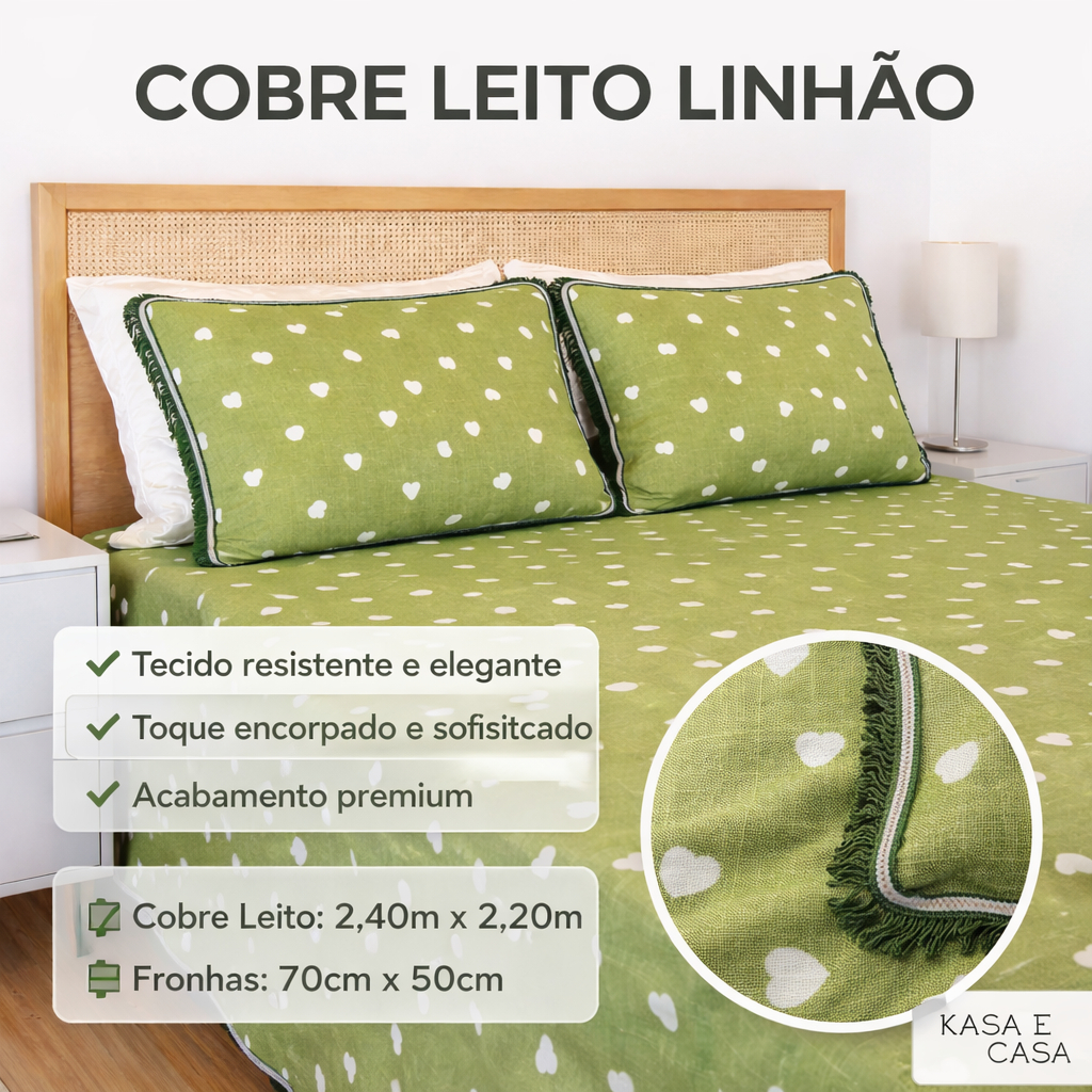 Jogo de Colcha Casal Box em Linhão com Franja e Fronhas 100% Algodão Cobre Leito Elegante e Confortável