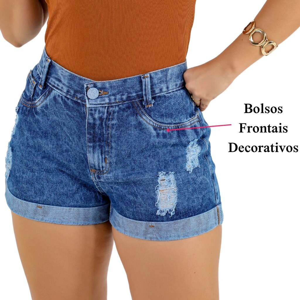 Short Jeans Feminino Soft Marmorizado Cintura Alta Barra Dobrada,Beleza Urbana