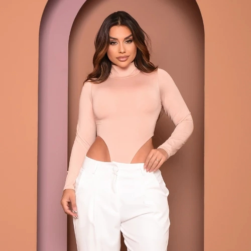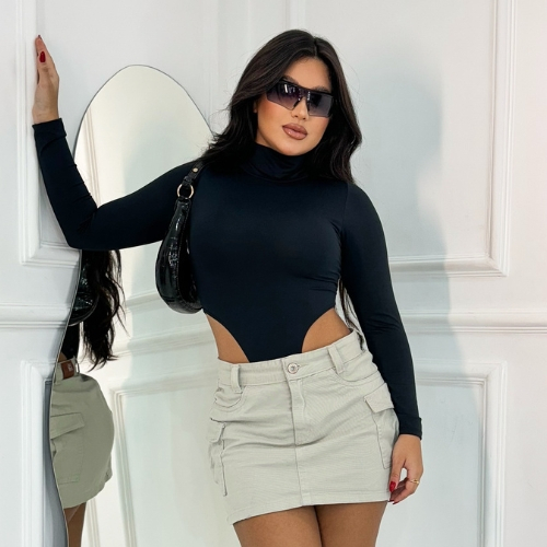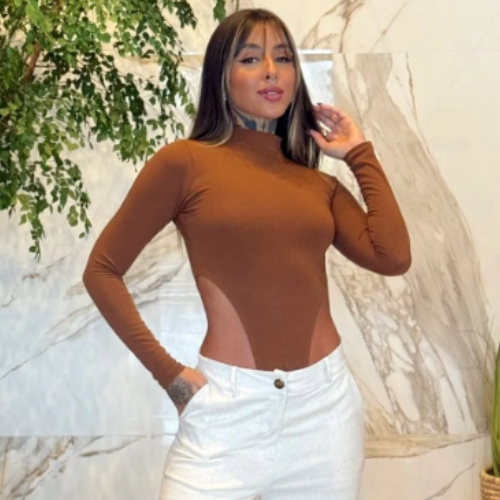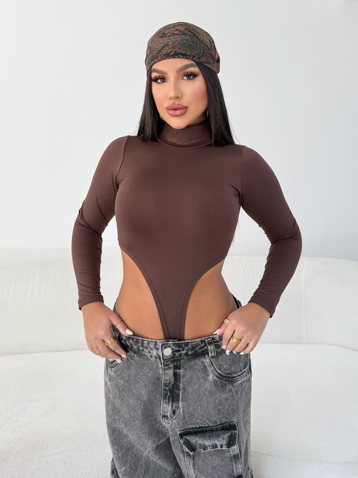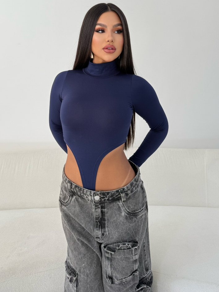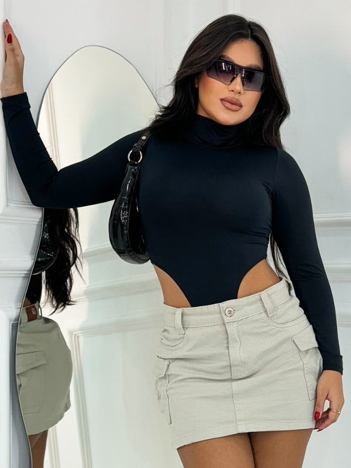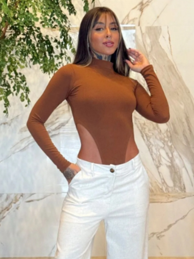 Body Collant Feminino Cavado Gola Alta Manga Longa Tendência Moda Blogueira