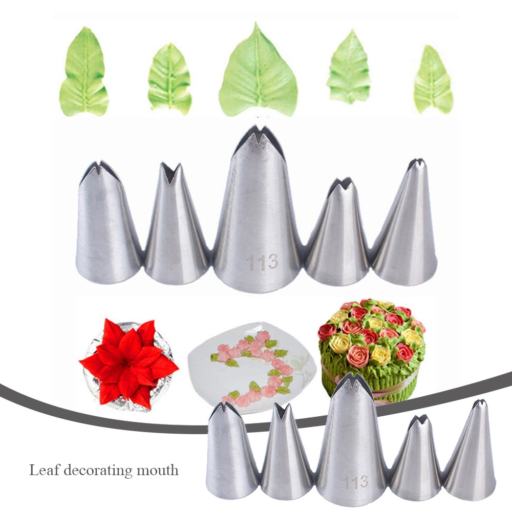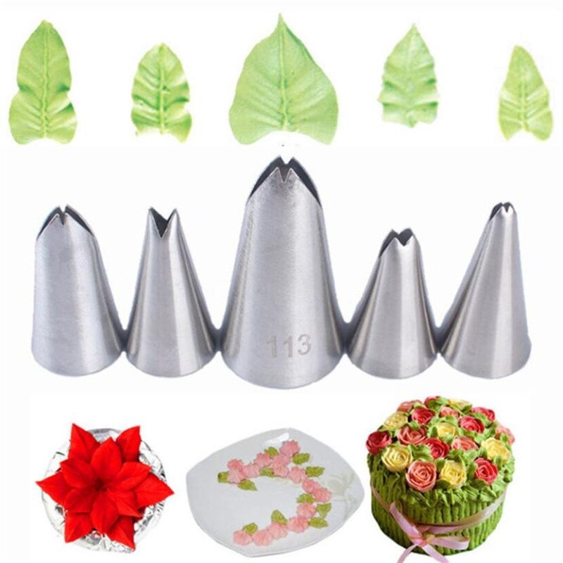 Bicos para confeitar folhas 5 peças para confeitar bolos e tortas em aço inoxidável