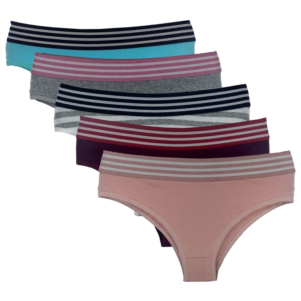 Kit 5 Calcinhas Vitória Cintura Alta Algodão Penteado Moda Feminina