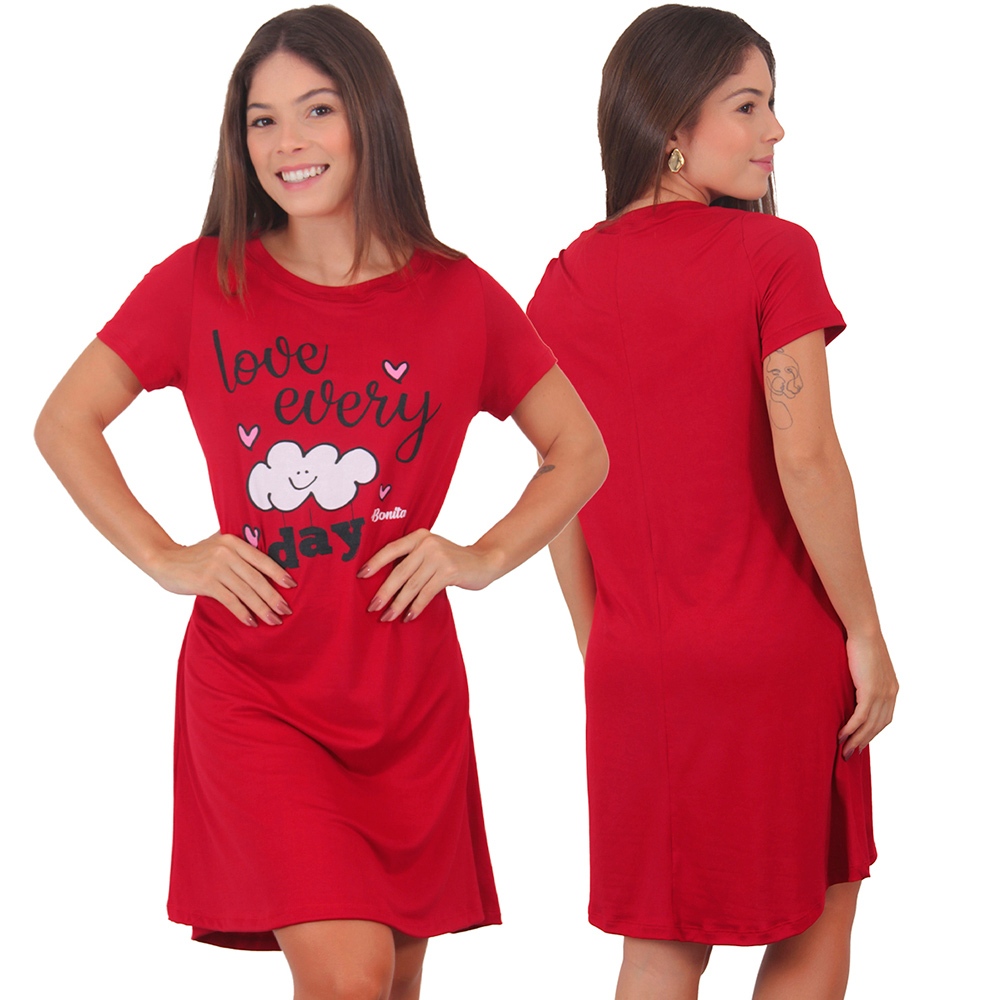 Kit 3 Camisolas Femininas Vestidinho de Dormir Longa Com Silk