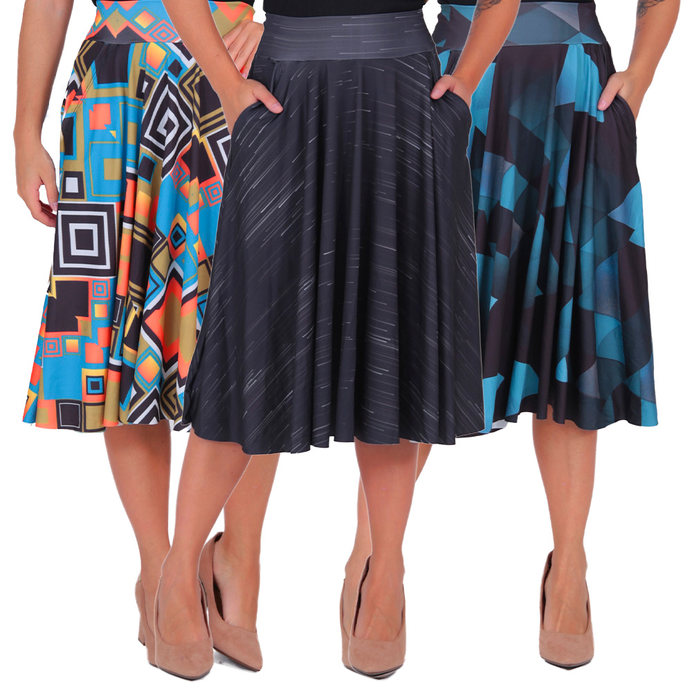Kit 3 Saias Godê Moda Feminina Evangelica Sublimadas