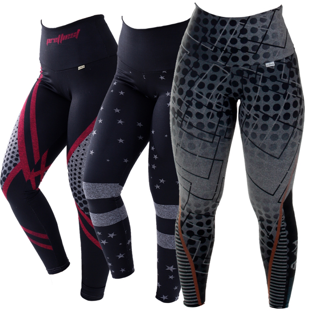 Kit 3 Leggings Sublimadas Suplex Grosso sem Transparência