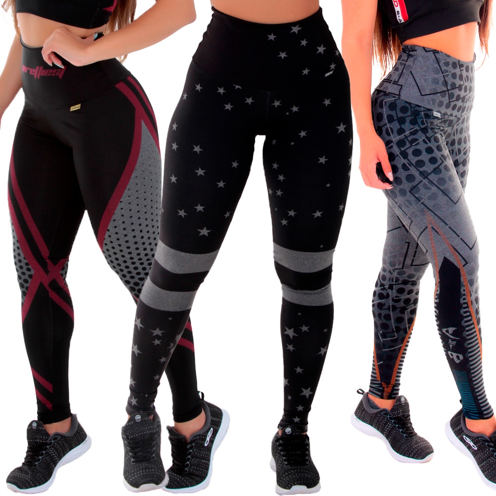 Kit 3 Leggings Feminina Sublimadas Zero Transparente Fitness Academia Yoga