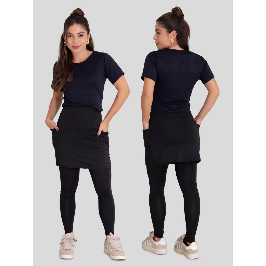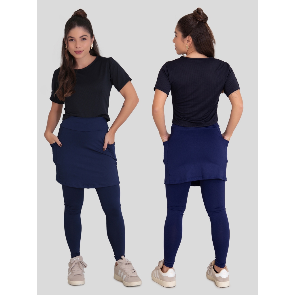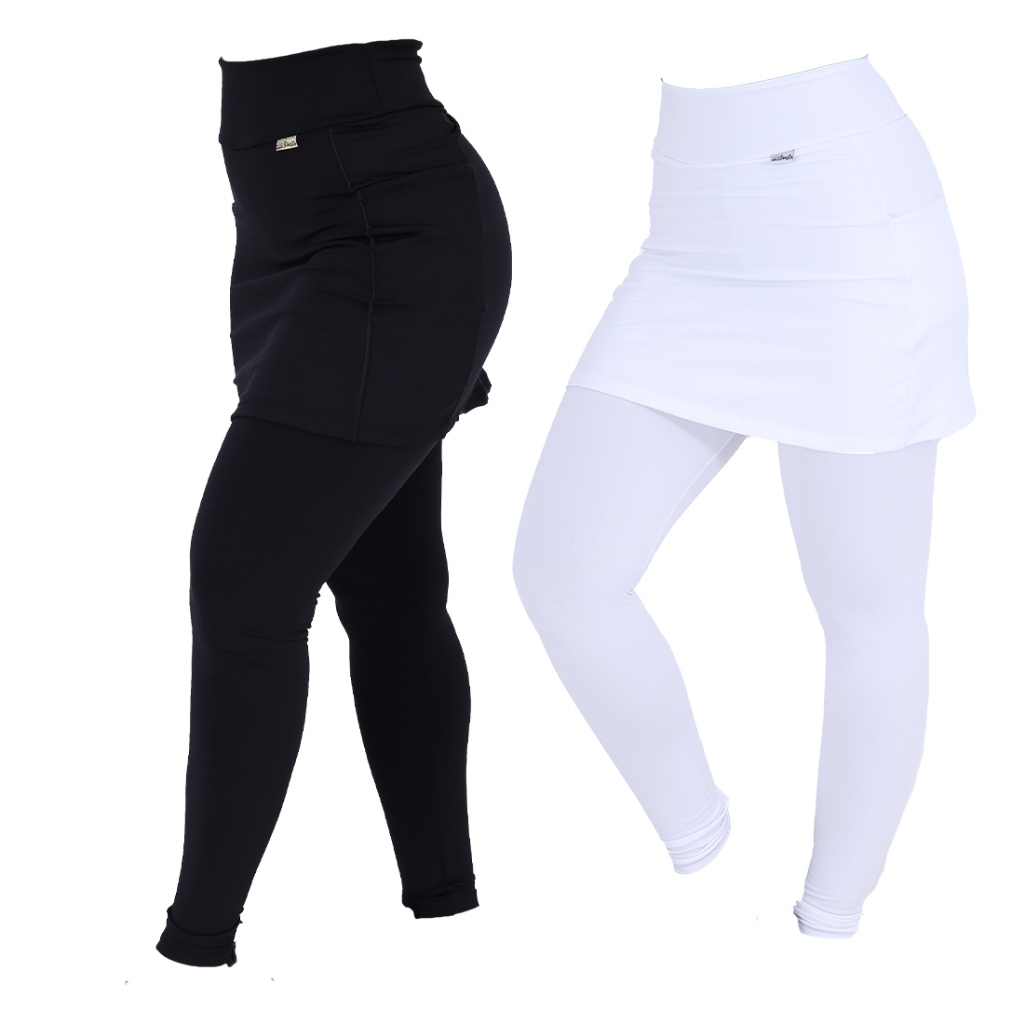 Kit 2 Leggings Saia Feminina Bolsos Fitness Suplex Esportivo