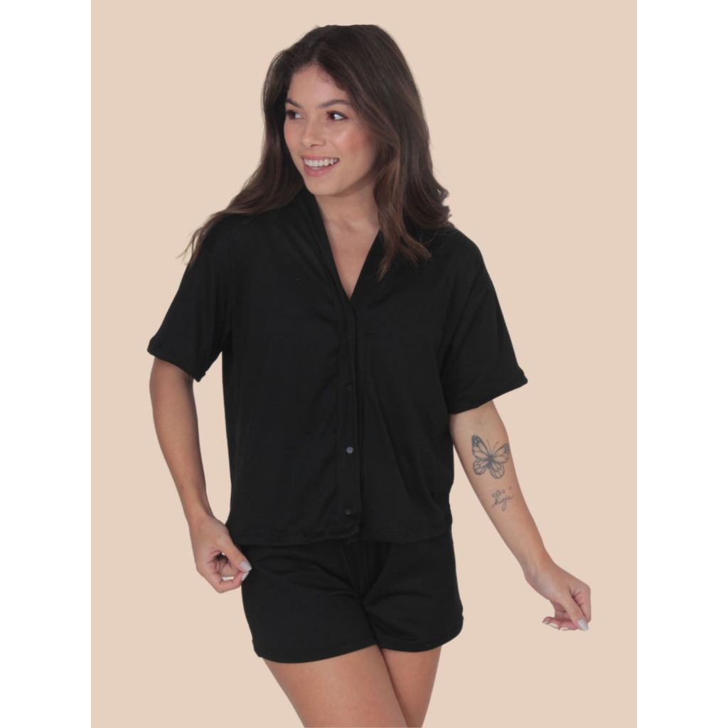 Pijama Feminino Americano Suede Fechado Blogueirinha Short Doll Boa Forma