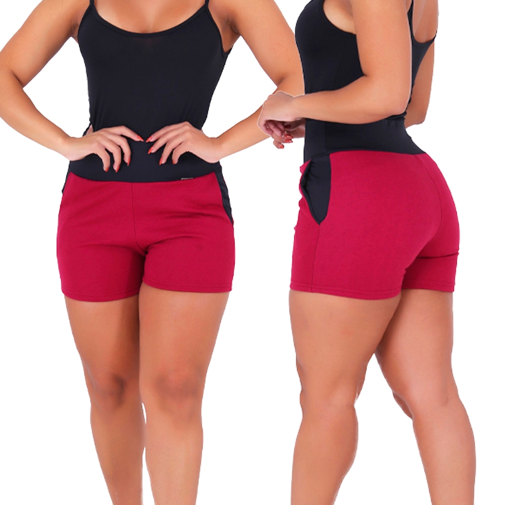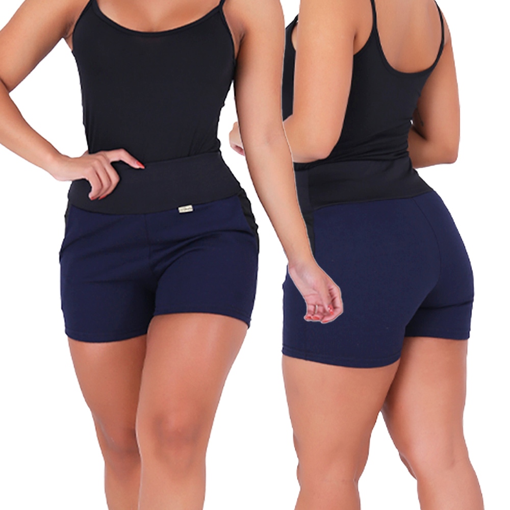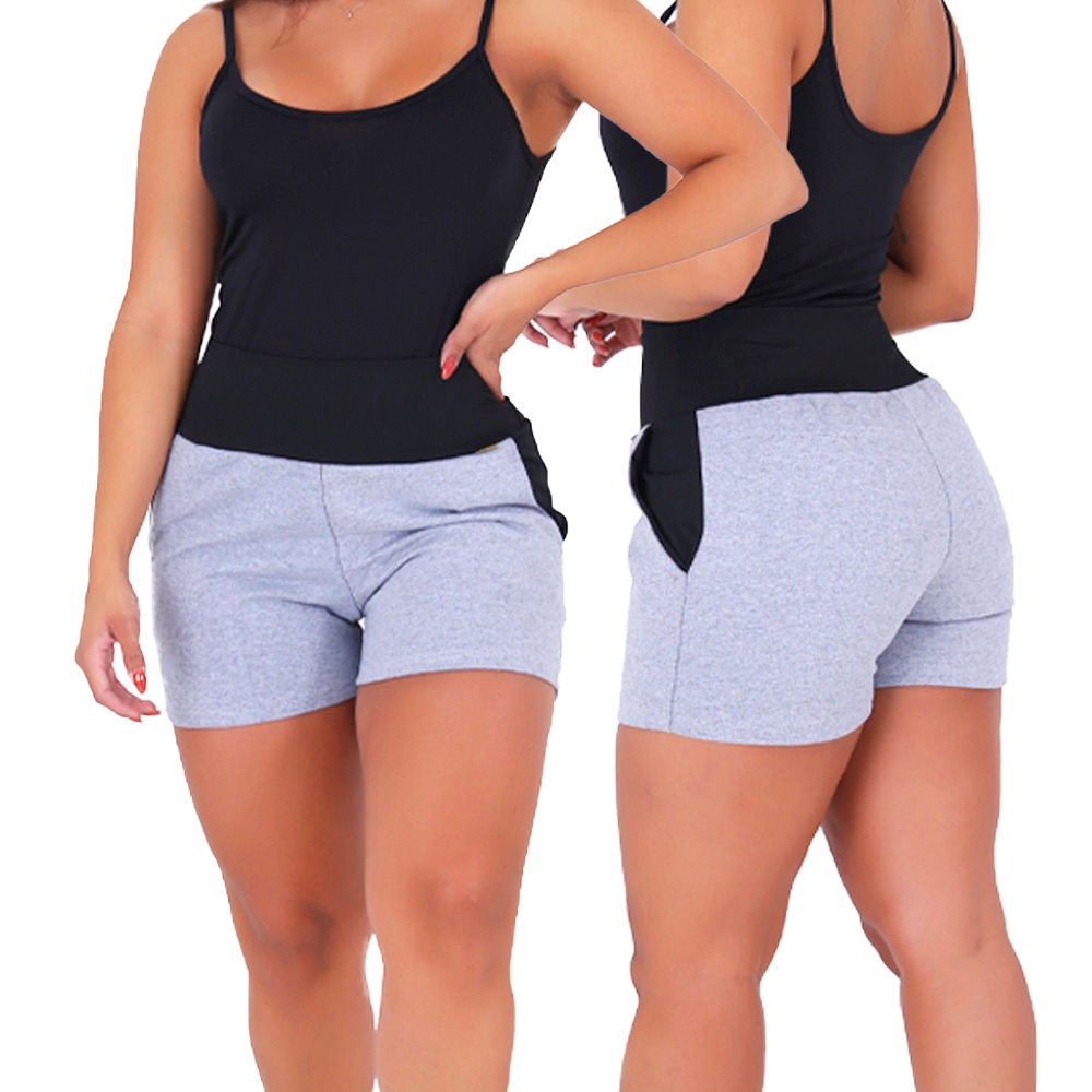 KIT 3 Short Feminino Moletom Algodão Sonic Cós Alto