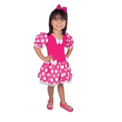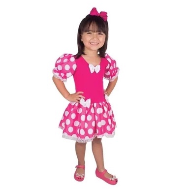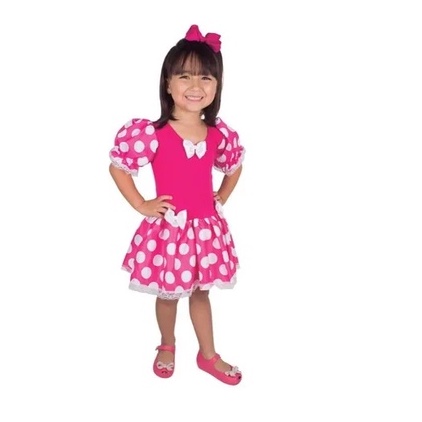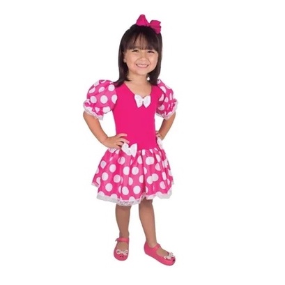 Fantasia Infantil Minnie Rosa E Branca Curta - 2 A 8 Anos