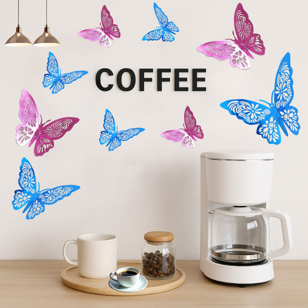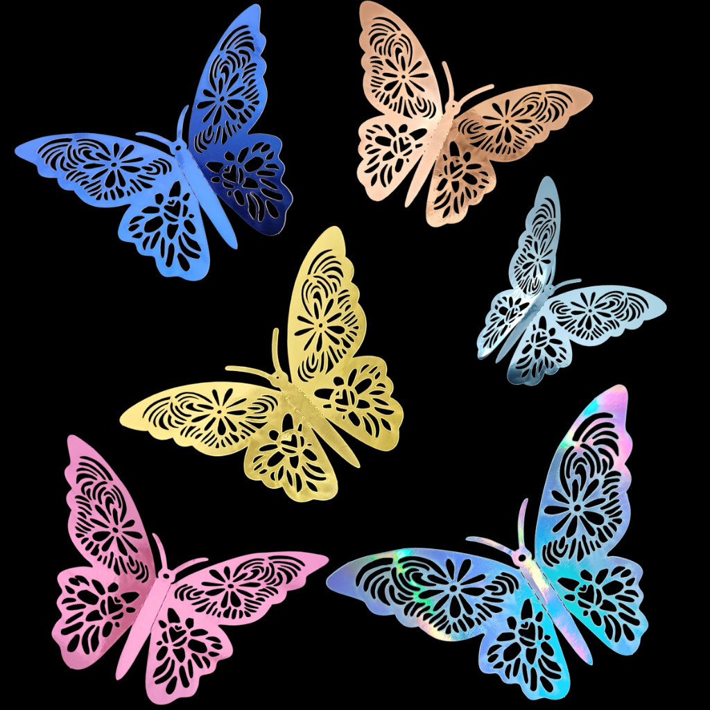 Kit 36 Borboletas 3D Adesivo Decoração Eventos Quarto Sala Aniversario Festa Bolo Cores Vivas