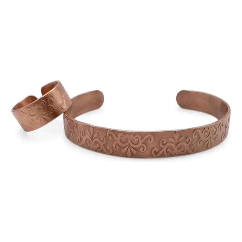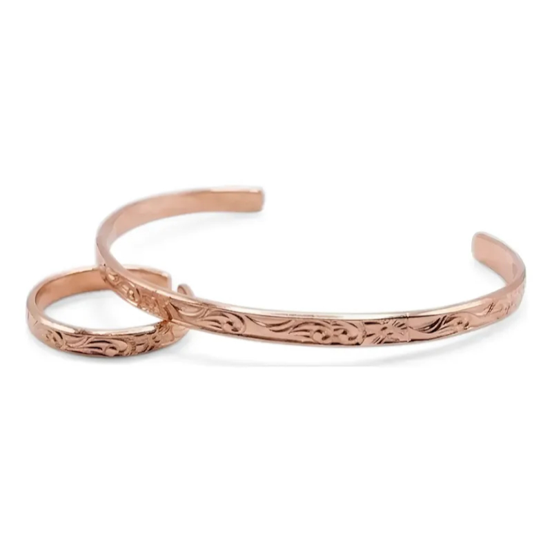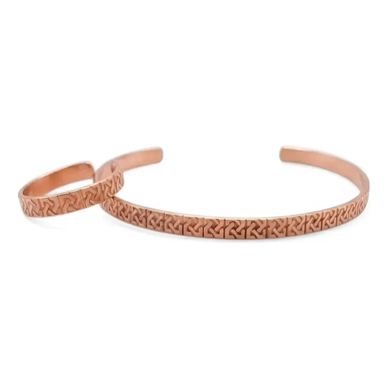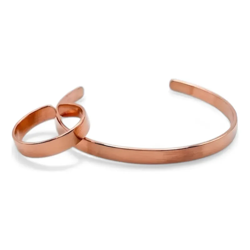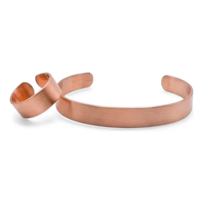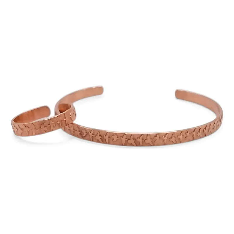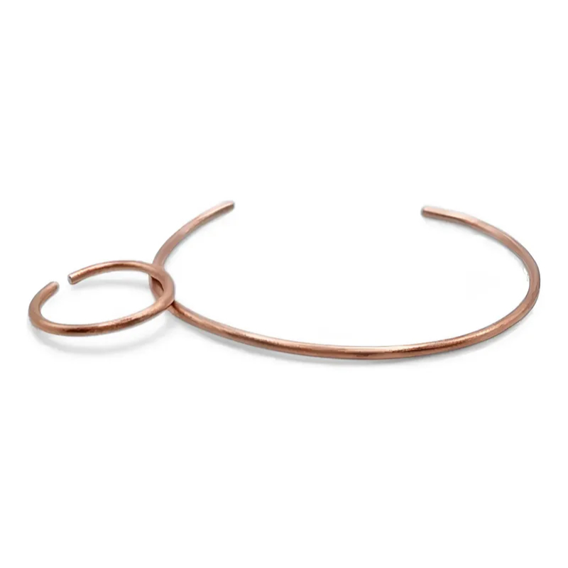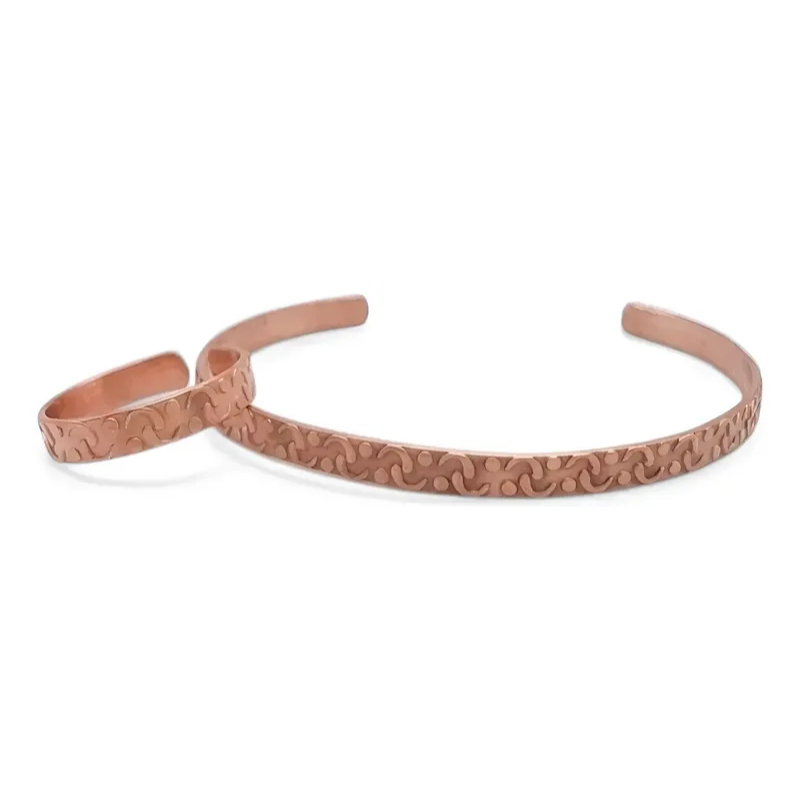Bracelete de Cobre Puro e Anel Bordado - 16Cm