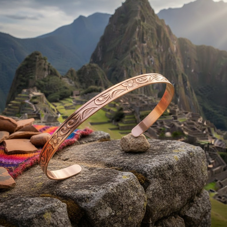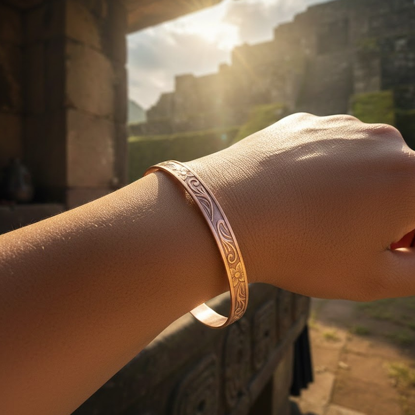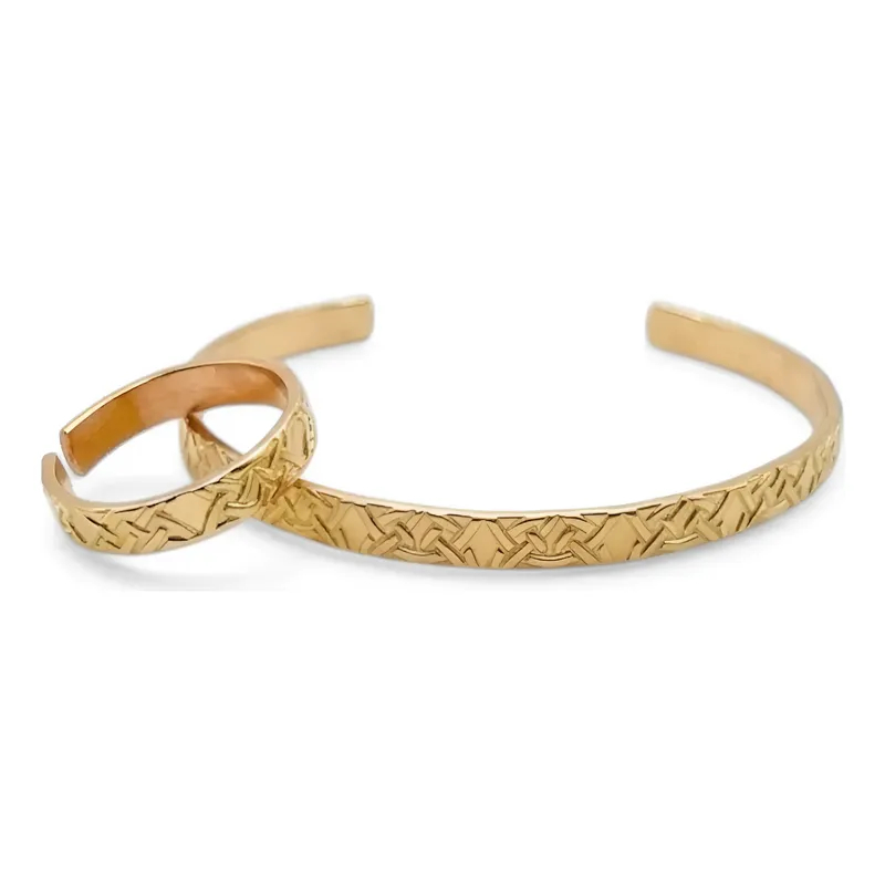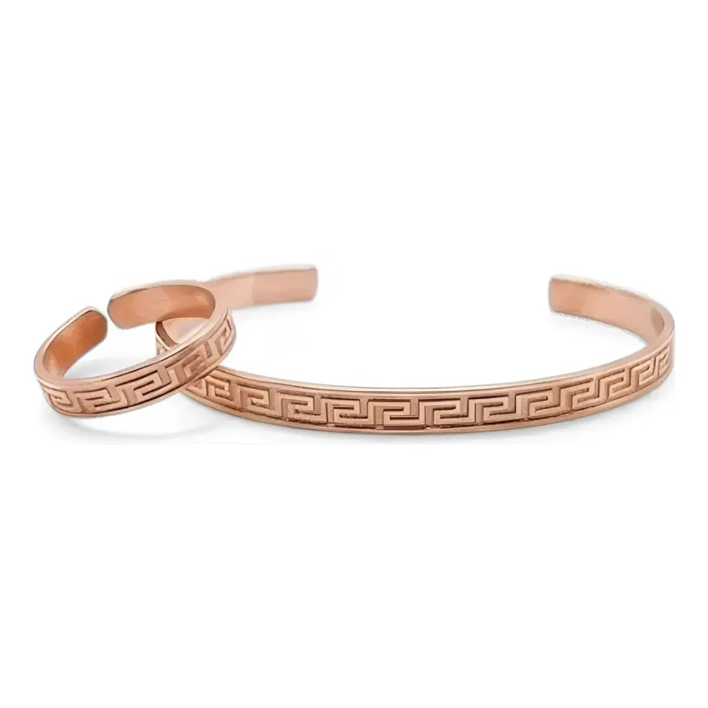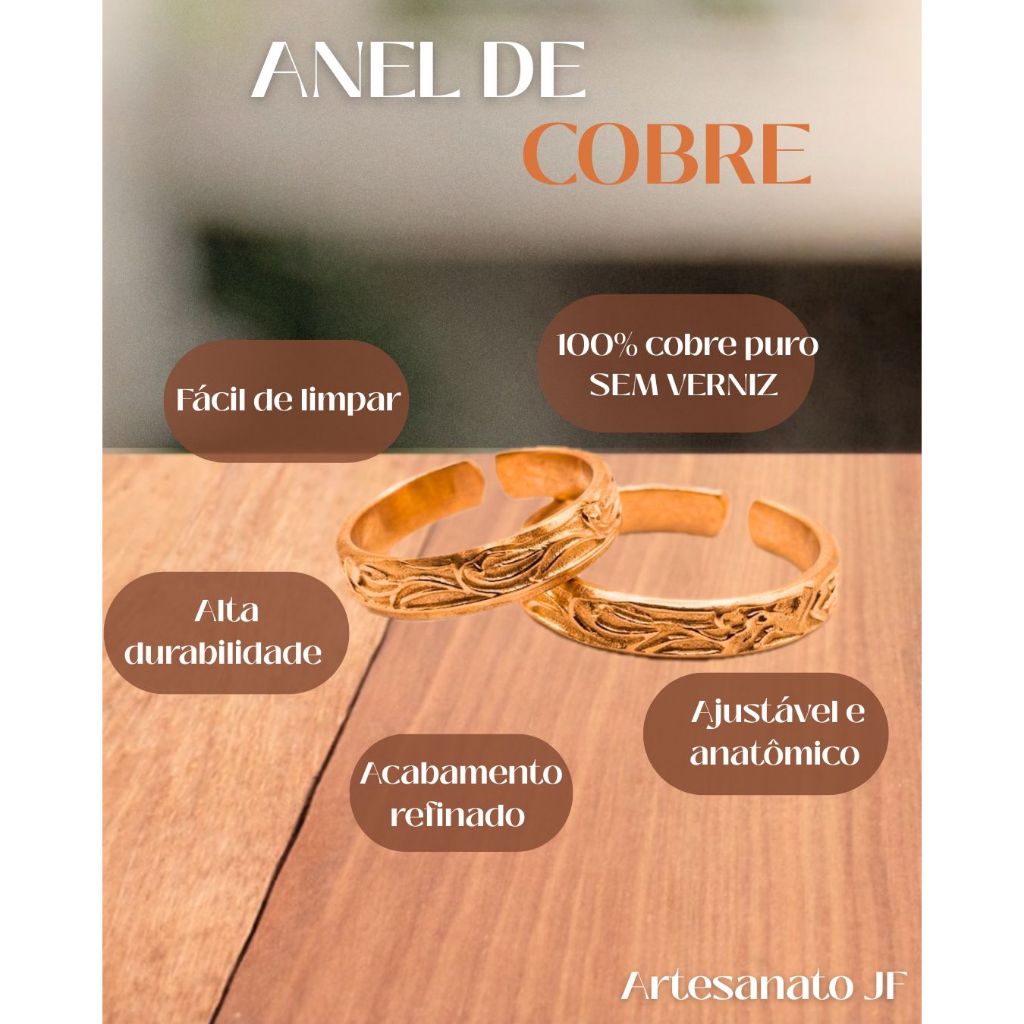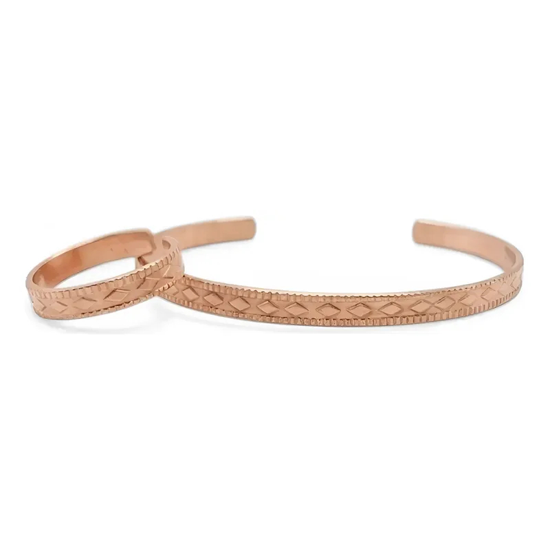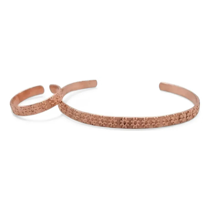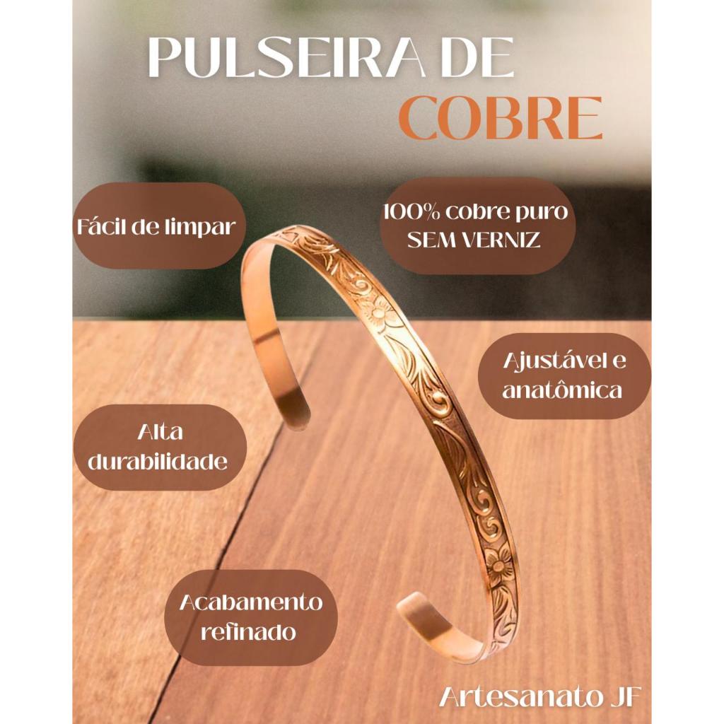 Bracelete de Cobre Puro e Anel Bordado - 16Cm