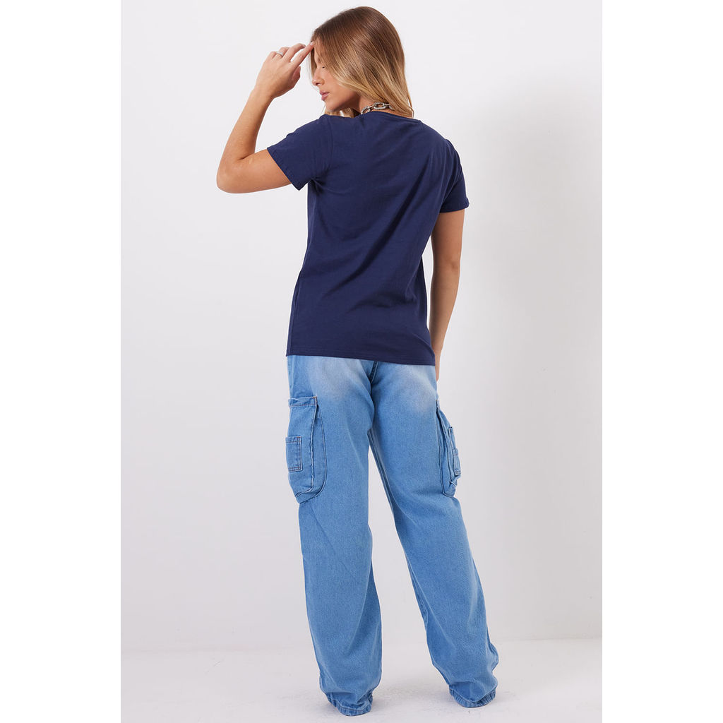 T-Shirt Feminina Estampada Planet Girls Azul Escuro