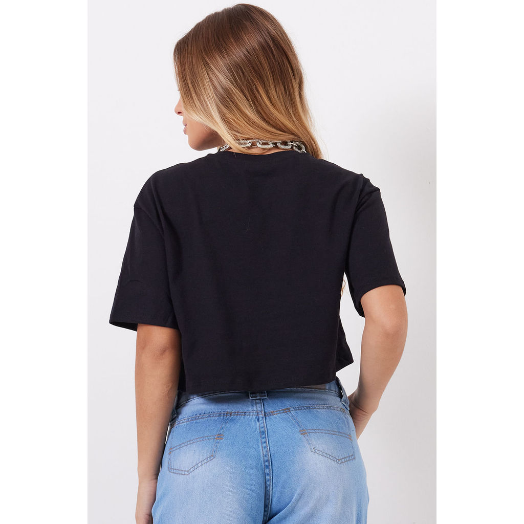 T-Shirt Cropped Feminina Planet Girls Preto