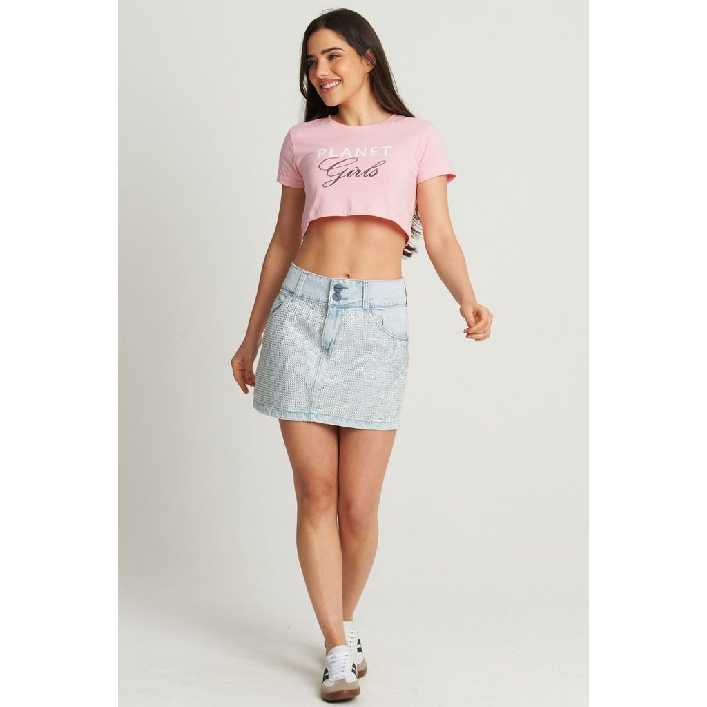 Cropped Feminino Letreiro Planet Girls Rosa Claro