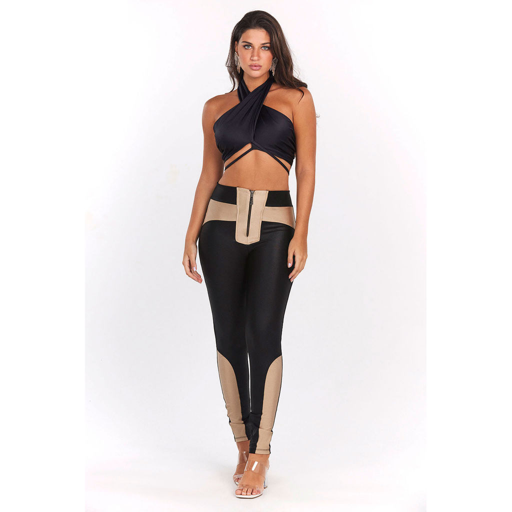 Cropped Helanca Up Glam Alça Transpassada Planet Girls Preto