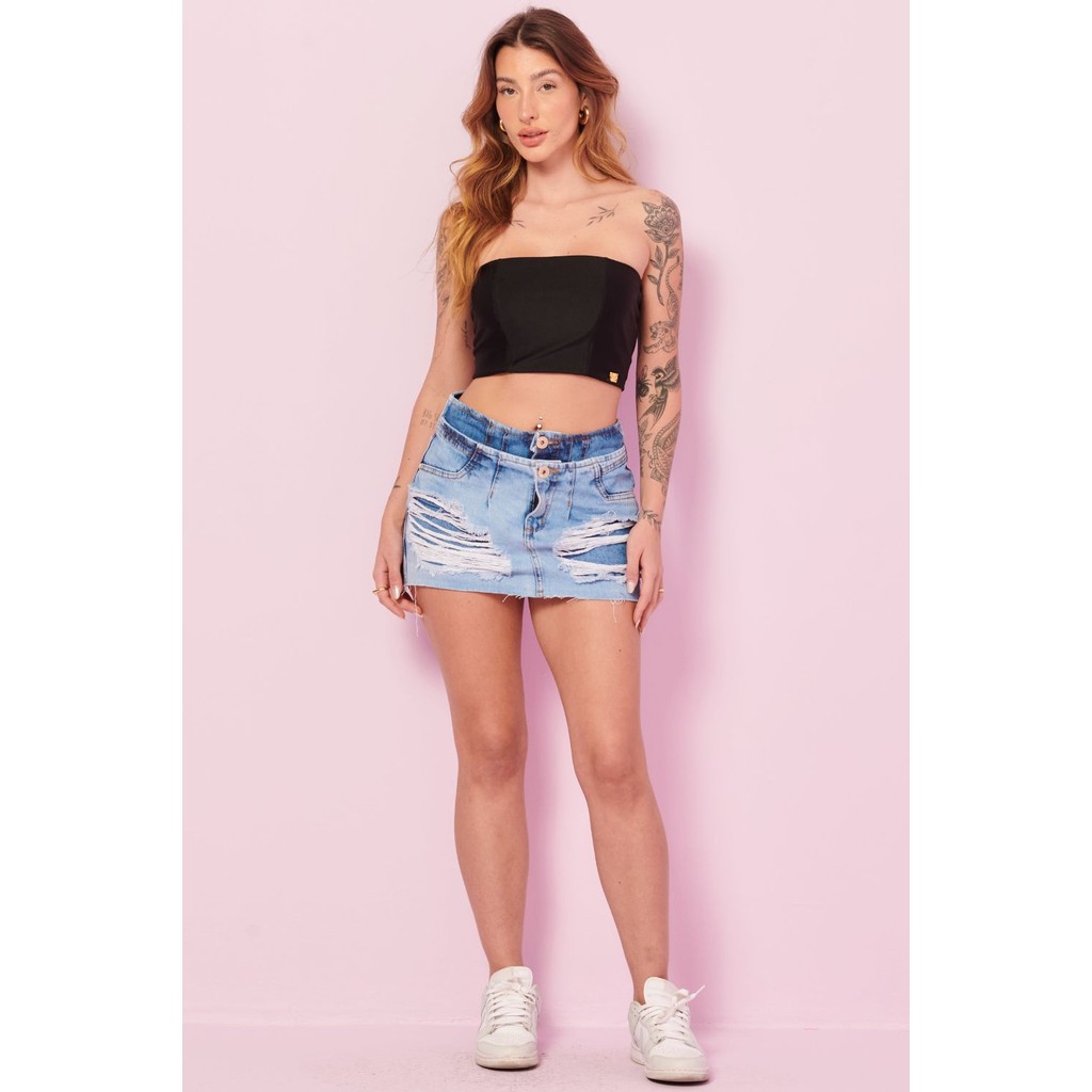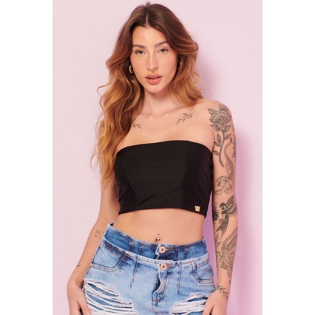Top Faixa Up Glam Decote Reto Planet Girls Preto