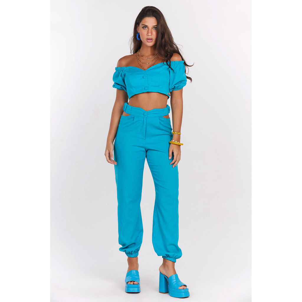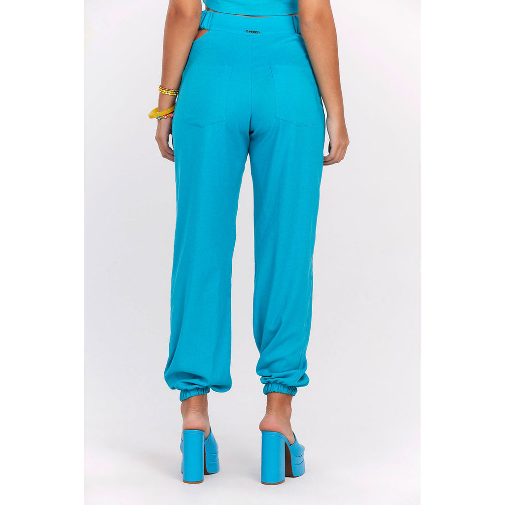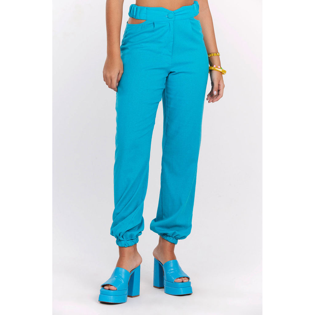 Calça Feminina Jogger Recorte Cintura Planet Girls Azul Médio